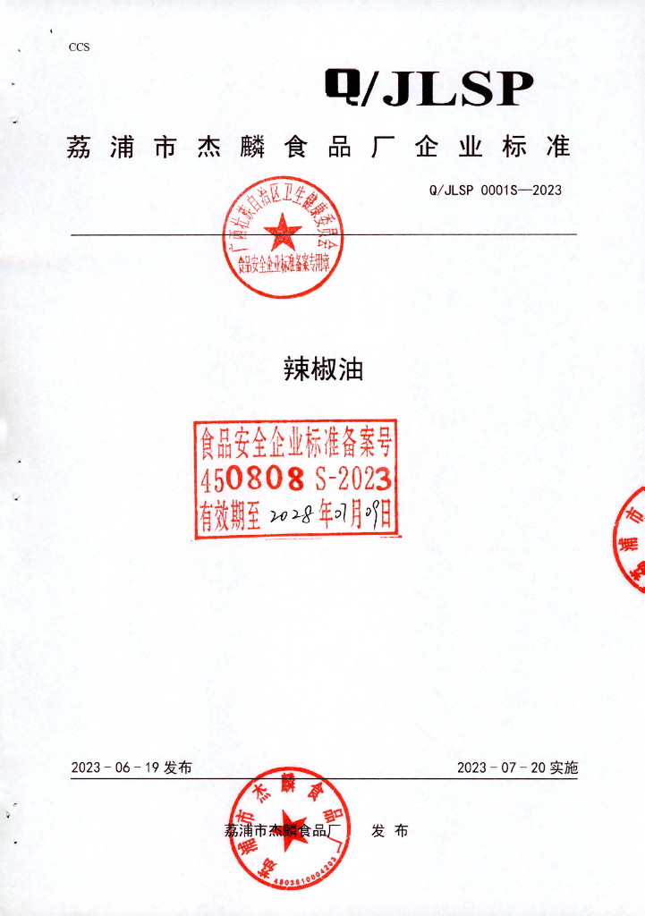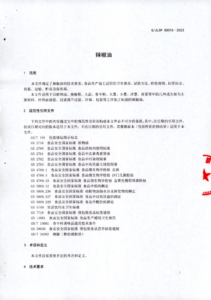 Q/JLSP 0001S-2023 辣椒油