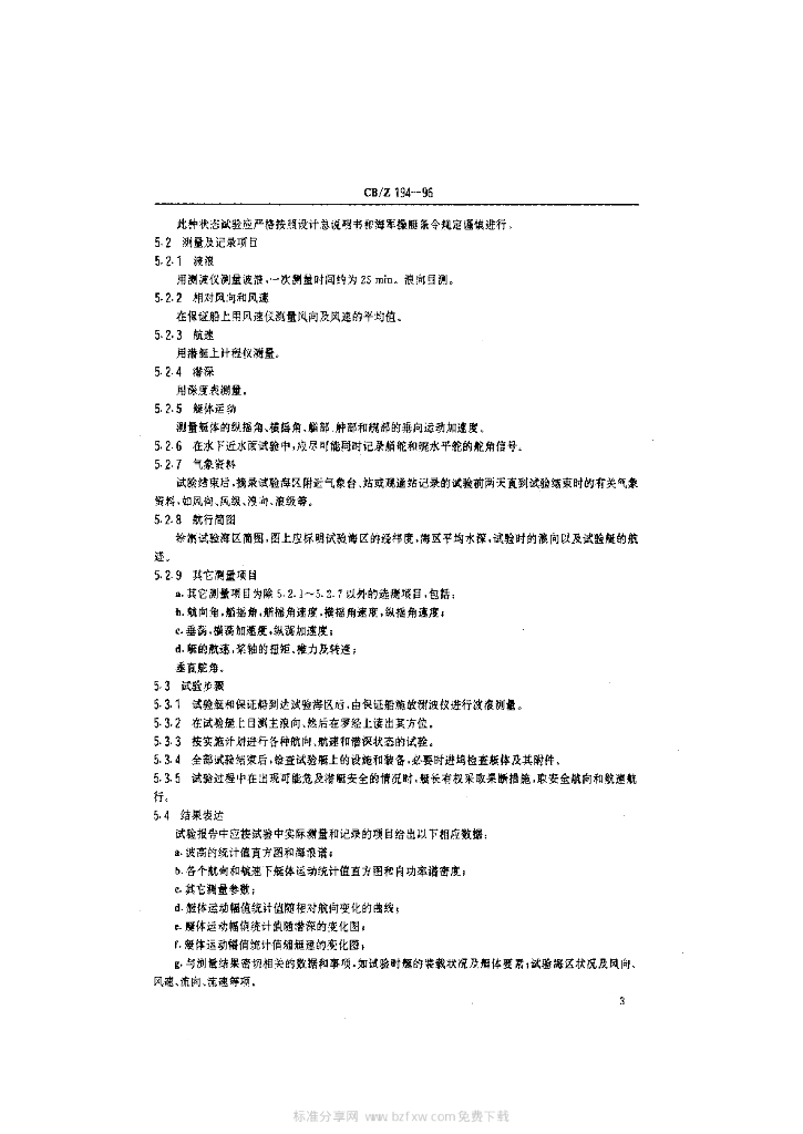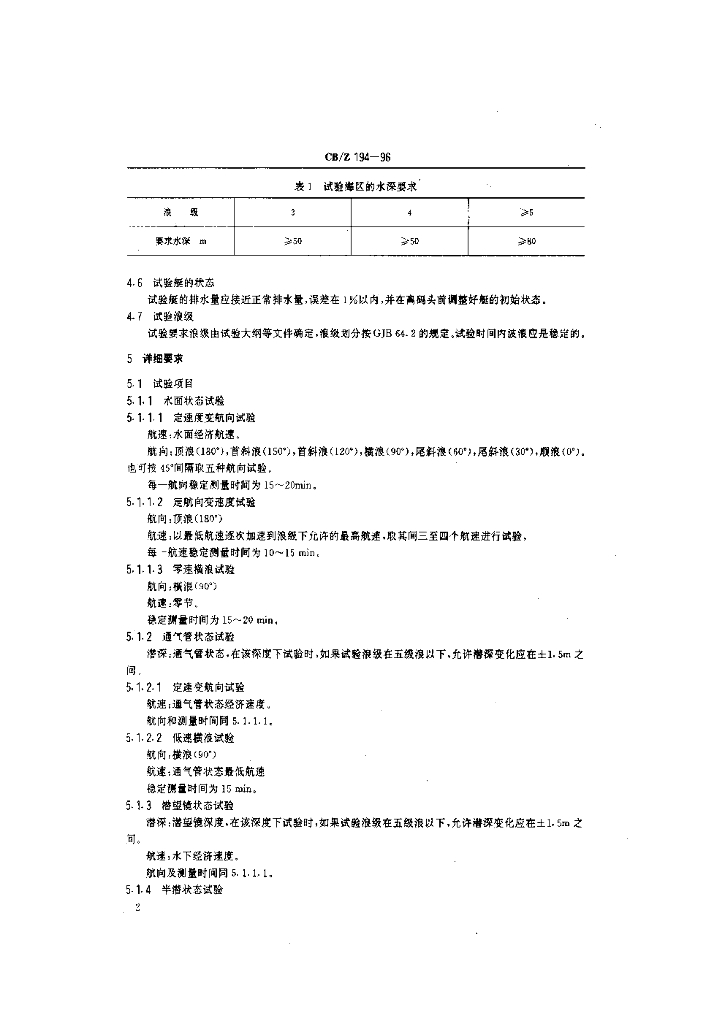 CB/Z 194-1996 潜艇实艇耐波性试验方法