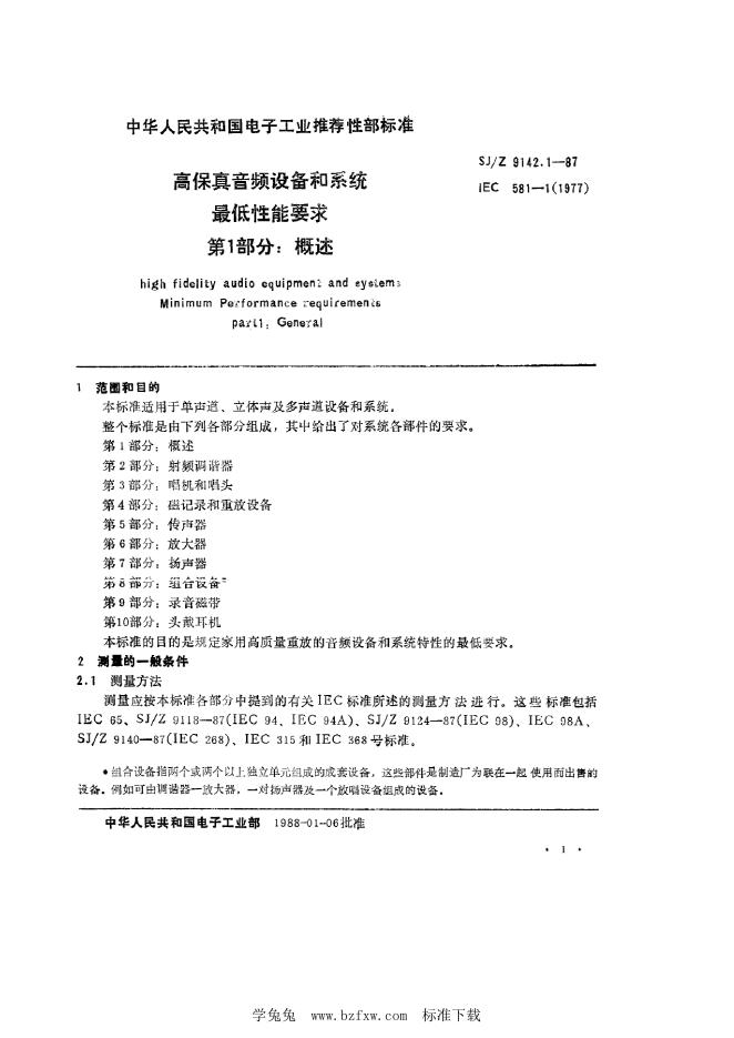SJ/Z 9142.1-1987 高保真音频设备和系统最低性能要求 第1部分:概述