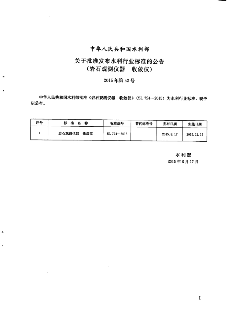 SL/T 724-2015 岩石观测仪器 收敛仪