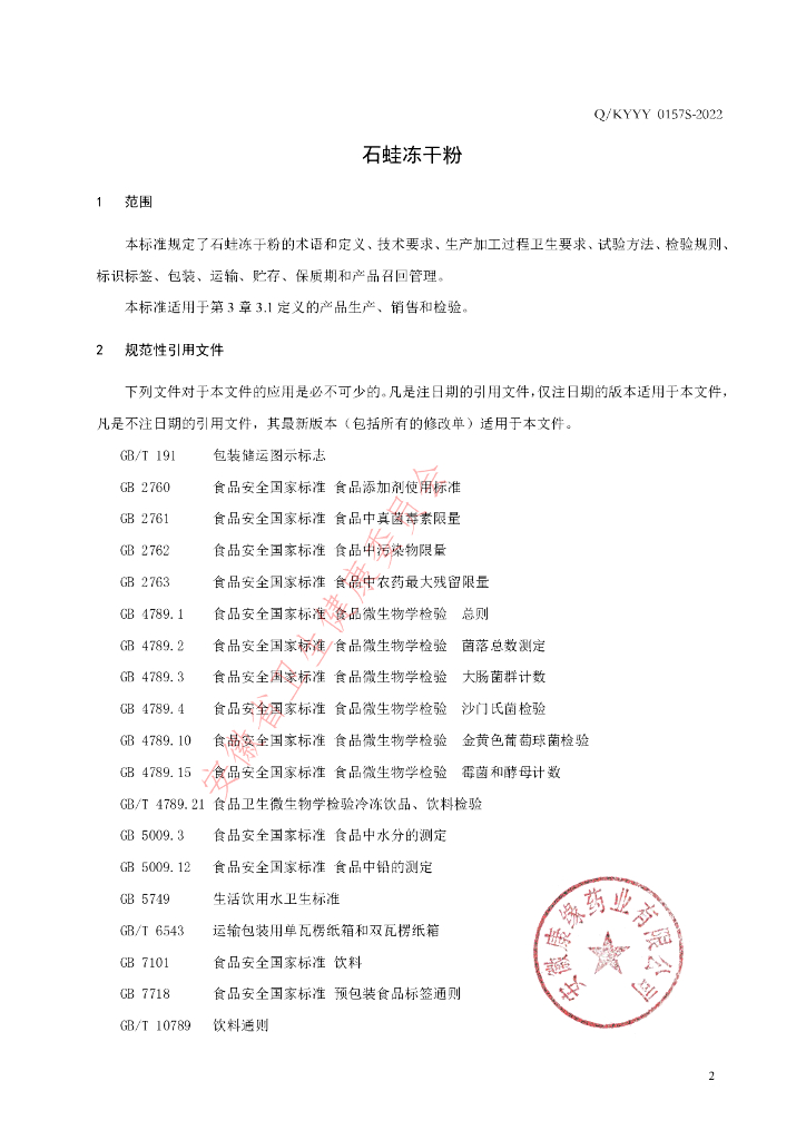 Q/KYYY 0157S-2022 石蛙冻干粉