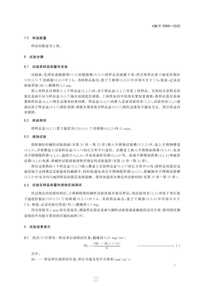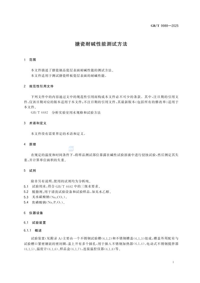 GB/T 9988-2025 搪瓷耐碱性能测试方法