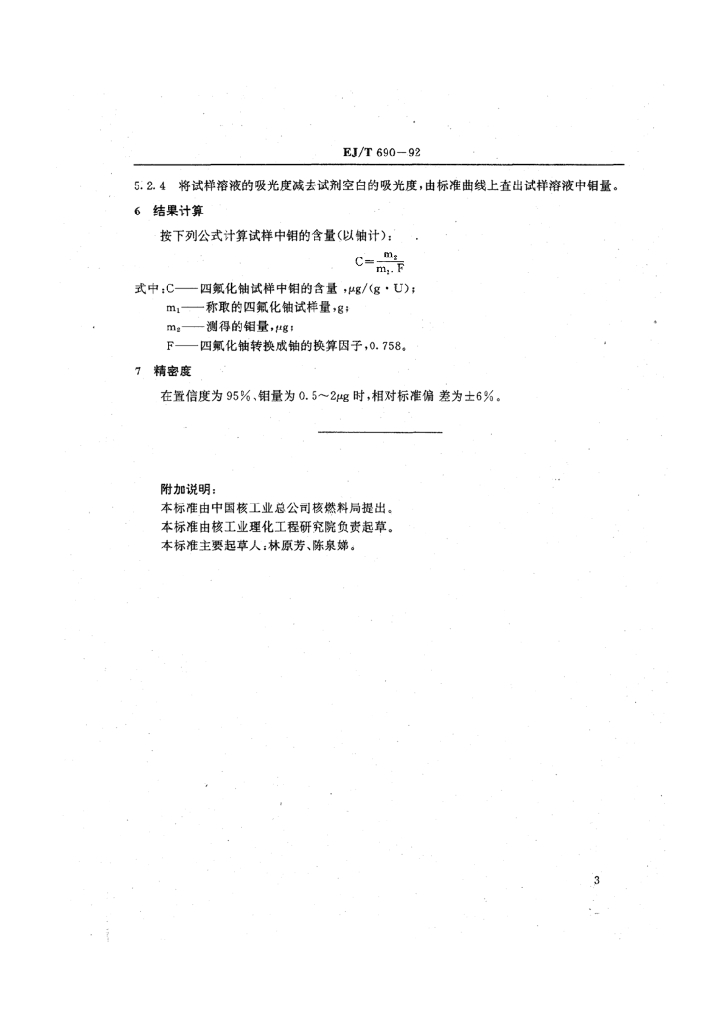EJ/T 690-1992 四氟化钠中钼的分光光度法测定
