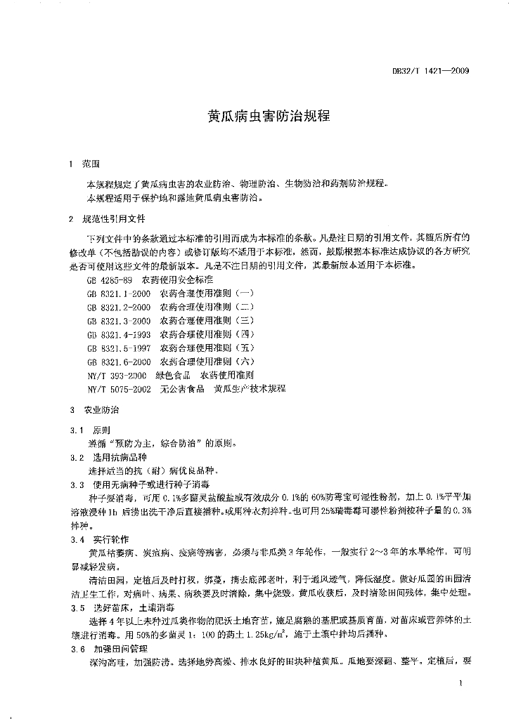 DB32/T 1421-2009 黄瓜病虫害防治规程