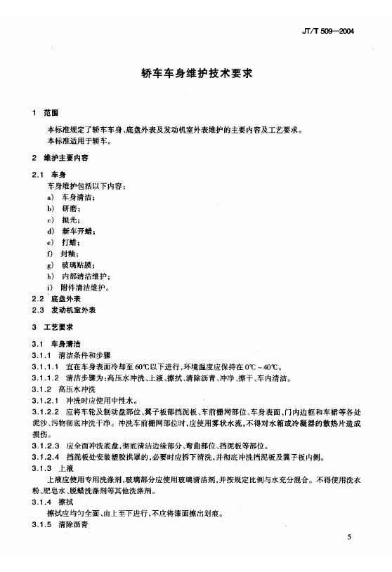 JT/T 509-2004 轿车车身维护技术要求