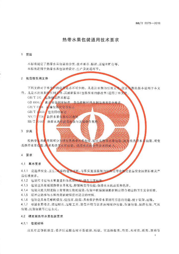 BB/T 0079-2018 热带水果包装通用技术要求
