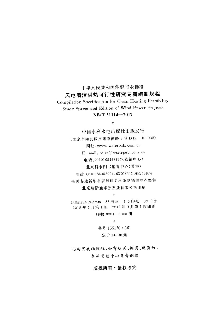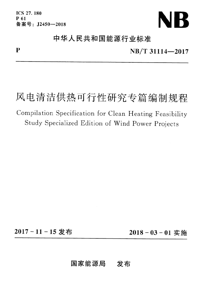 NB/T 31114-2017 风电清洁供热可行性研究专篇编制规程