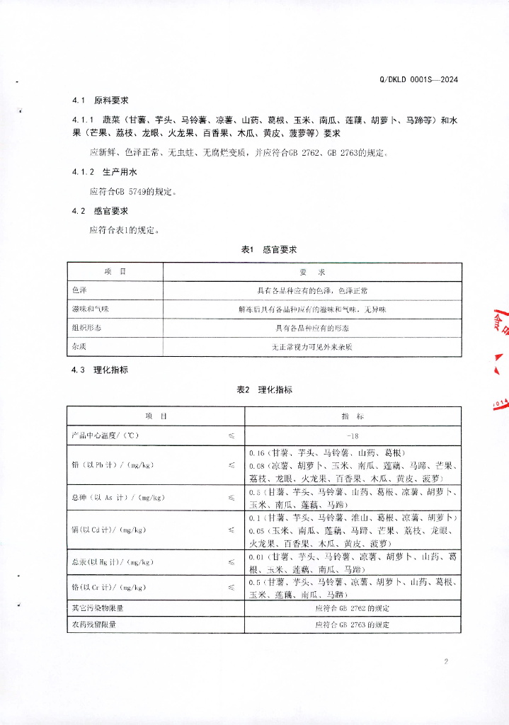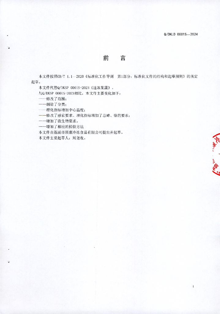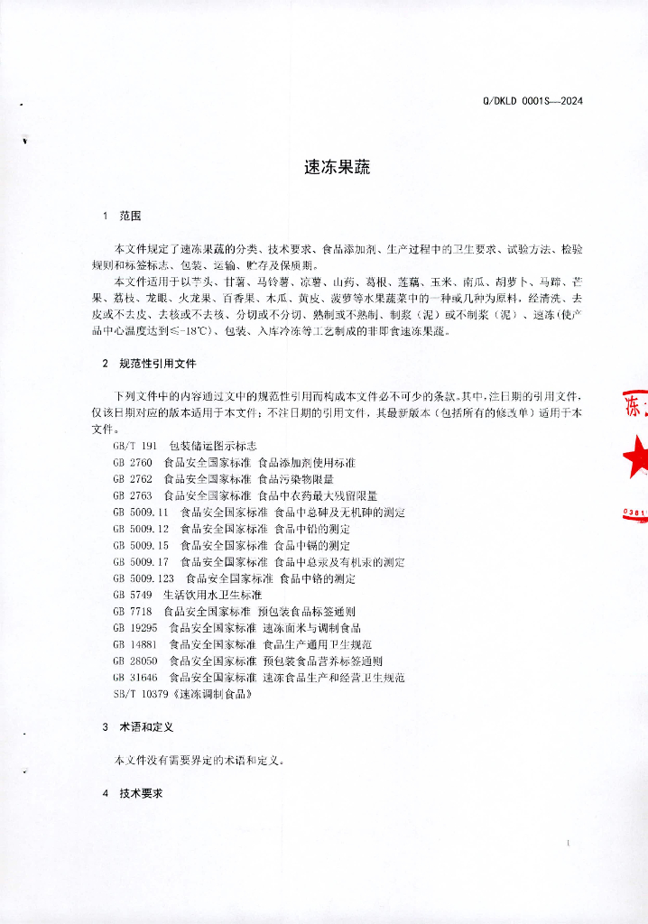 Q/DKLD 0001S-2024 速冻果蔬