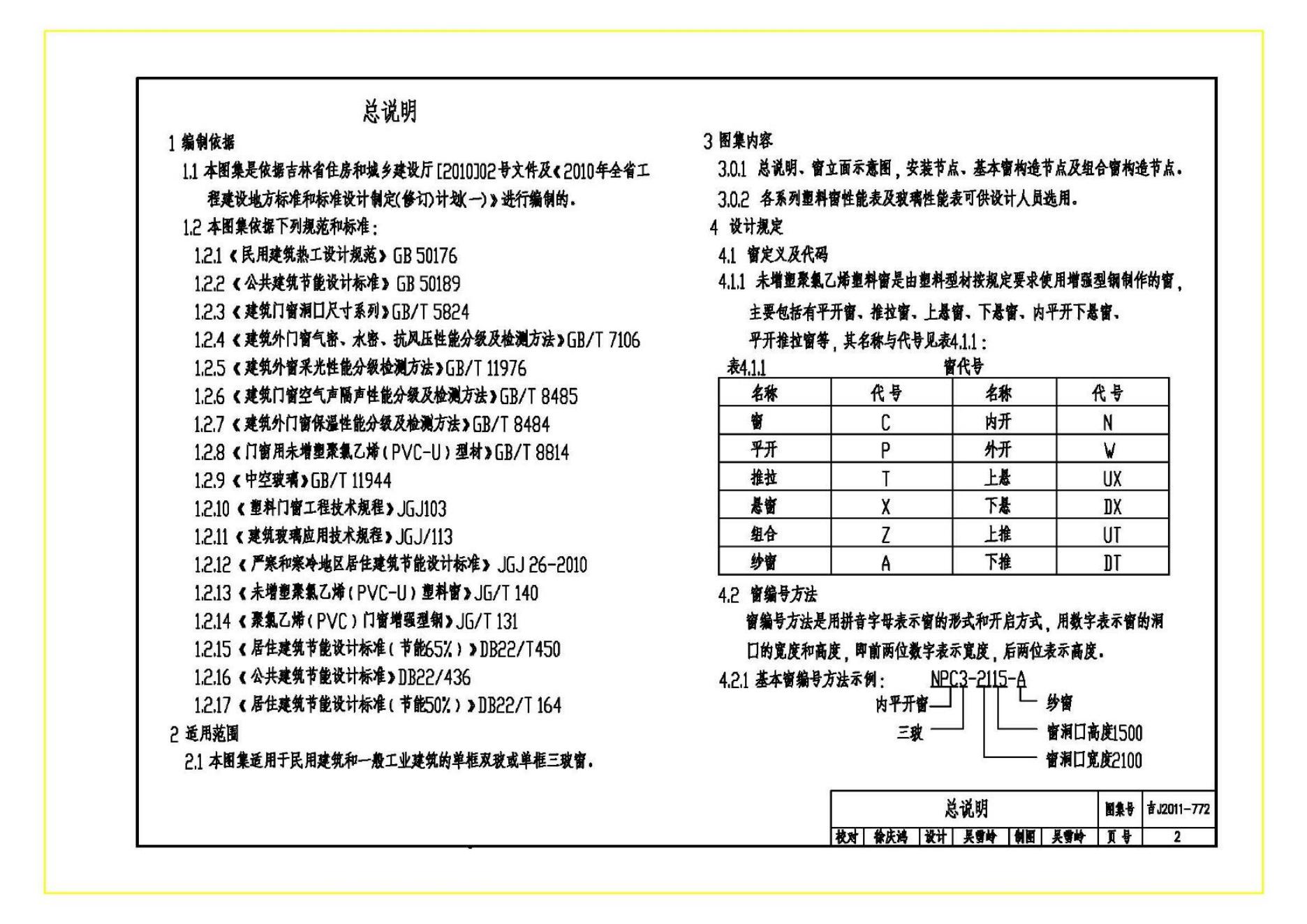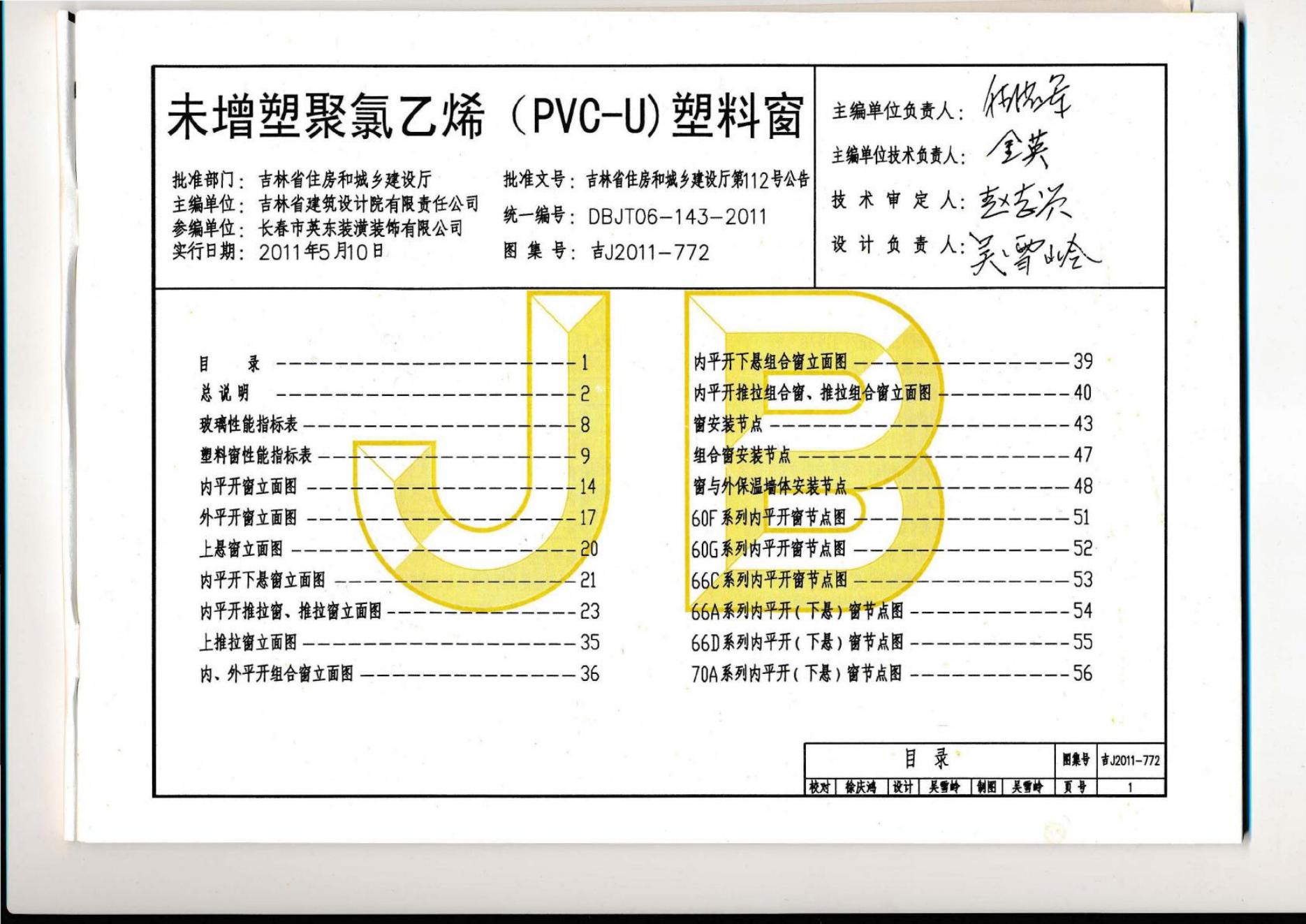 吉J2011-772 未增塑聚氯乙烯(PVC-U)塑料窗设计图集