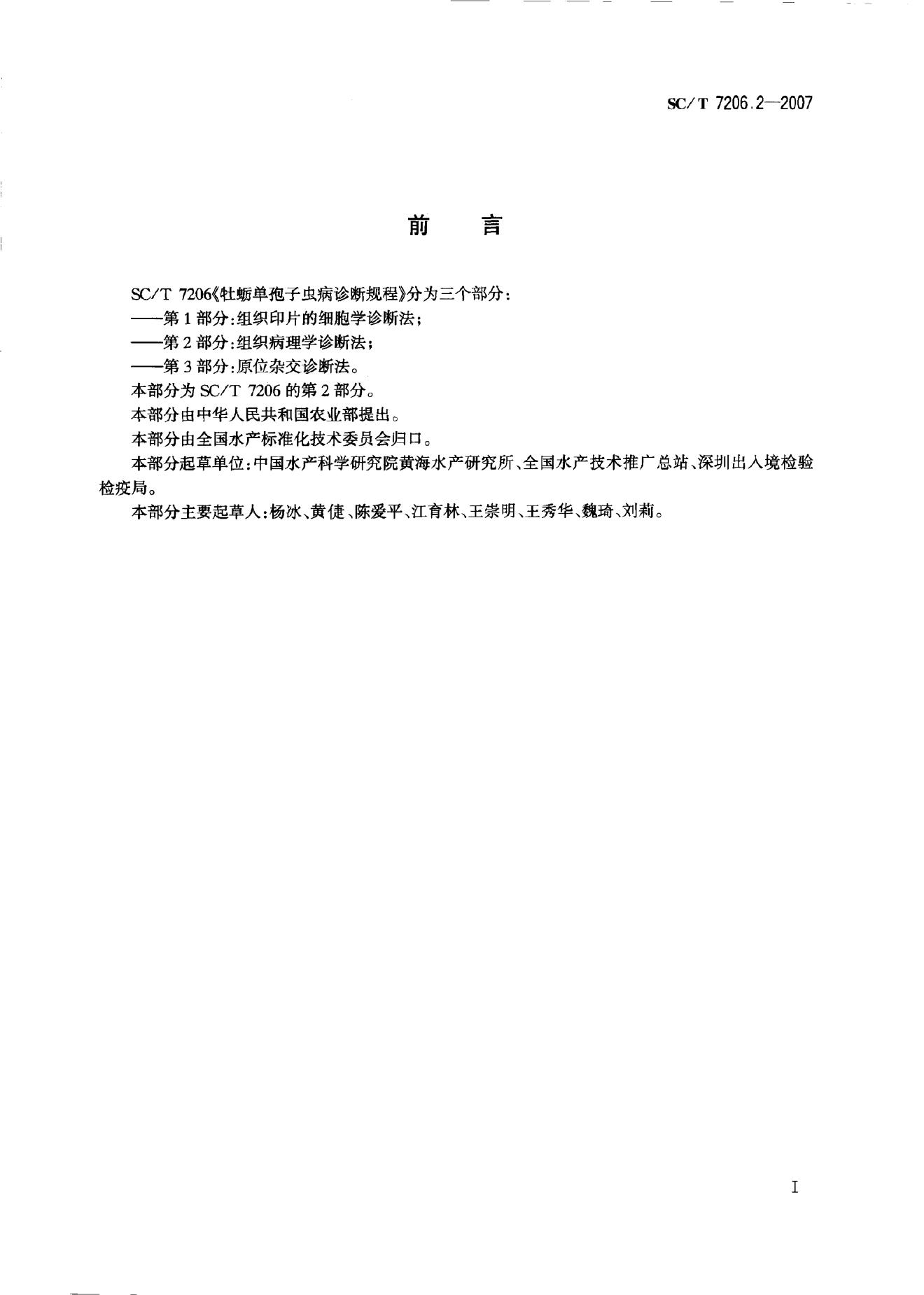 SC/T 7206.2-2007 牡蛎单孢子虫病诊断规程 第2部分:组织病理学诊断法