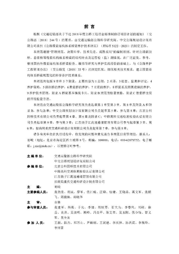 交通运输部公路科学研究院、中交公路规划设计院有限公司、北京公科固桥技术有限公司、中路高科交通检测检验认证有限公司、江苏扬子江高速通道管理有限公司、招商局重庆交通科研设计院有限公司