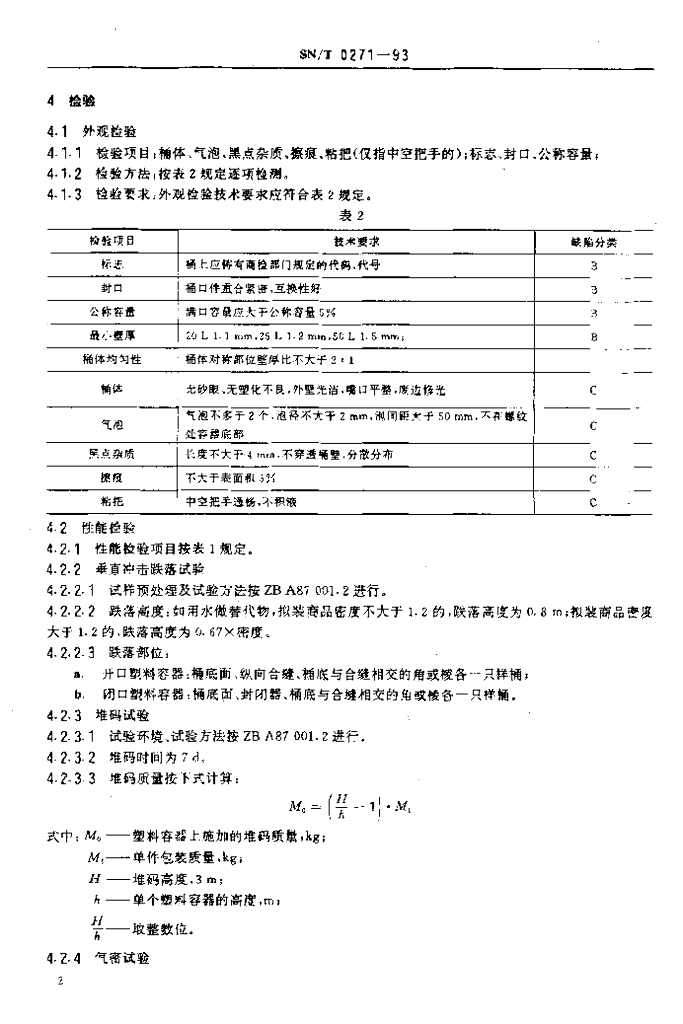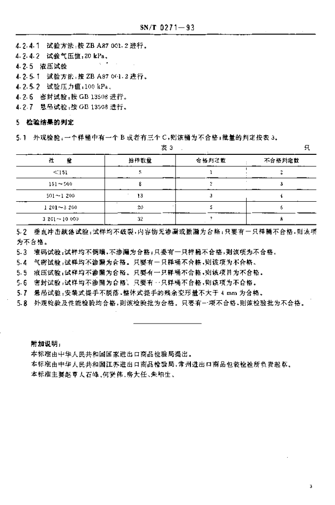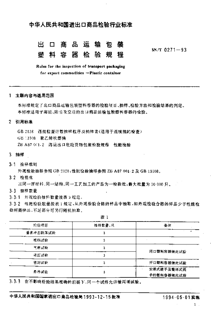SN/T 0271-1993 出口商品运输包装 塑料容器检验规程
