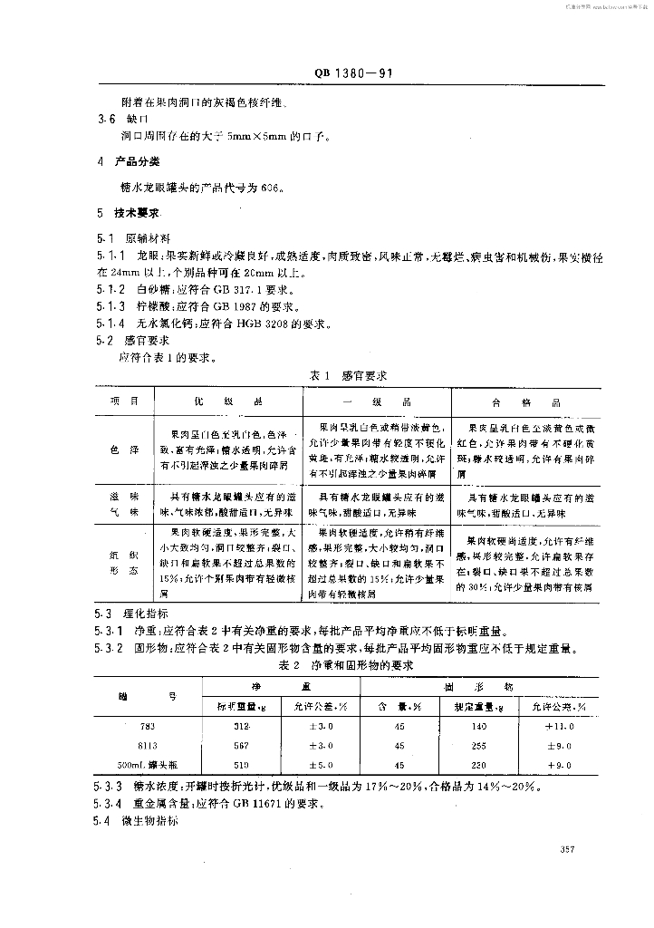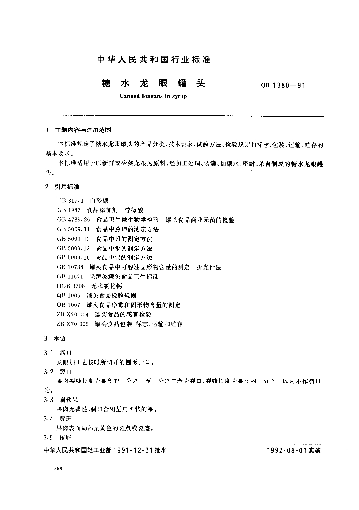 QB 1380-1991 糖水龙眼罐头
