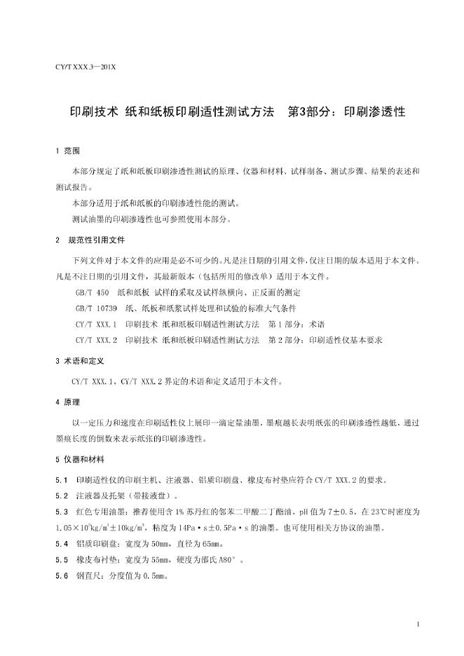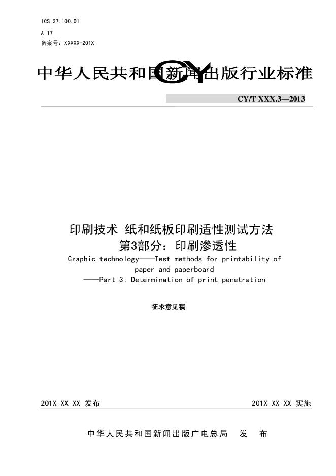 CY/T 104.3-2014 印刷技术 纸和纸板印刷适性测试方法 第3部分:印刷渗透性