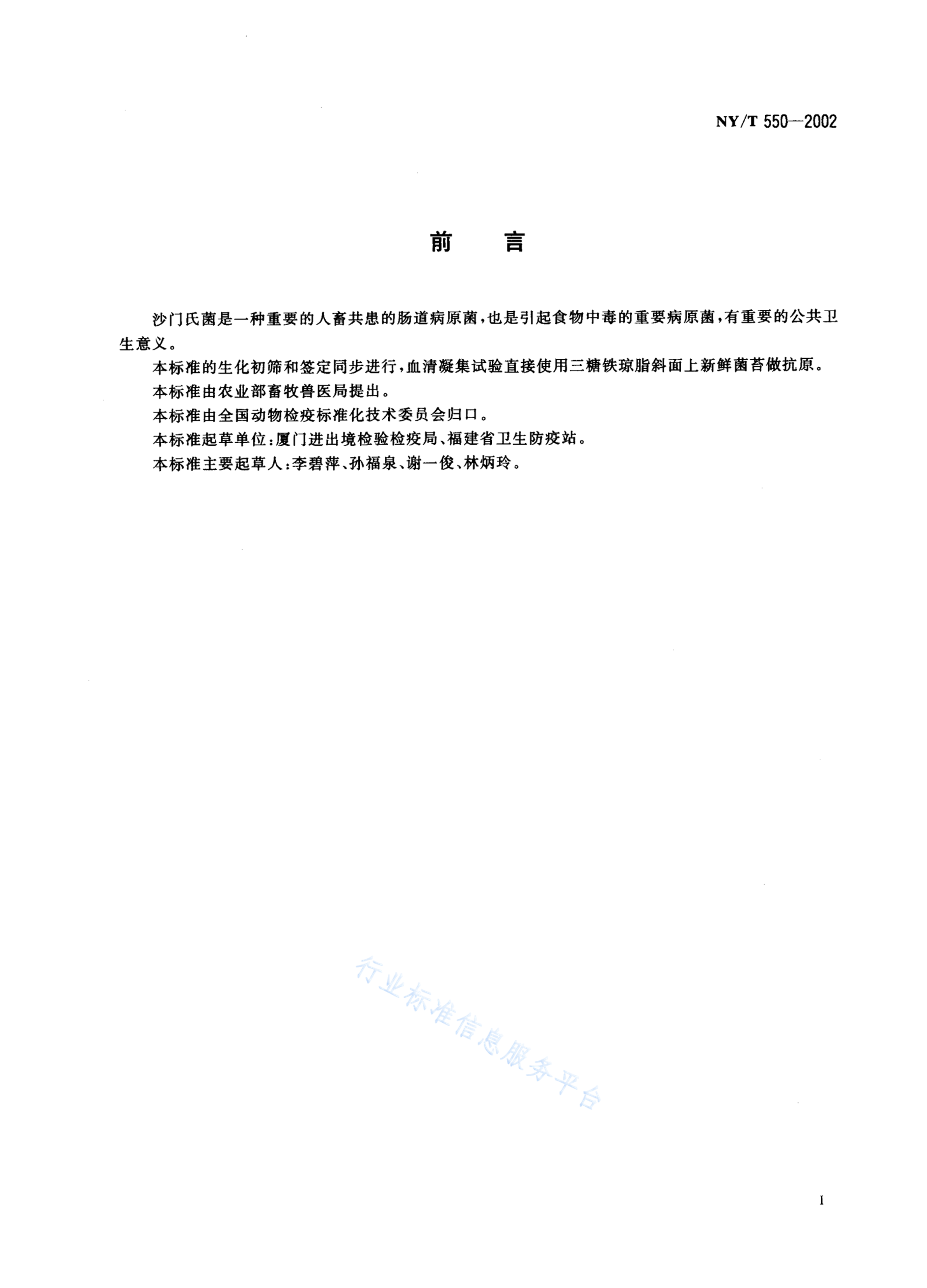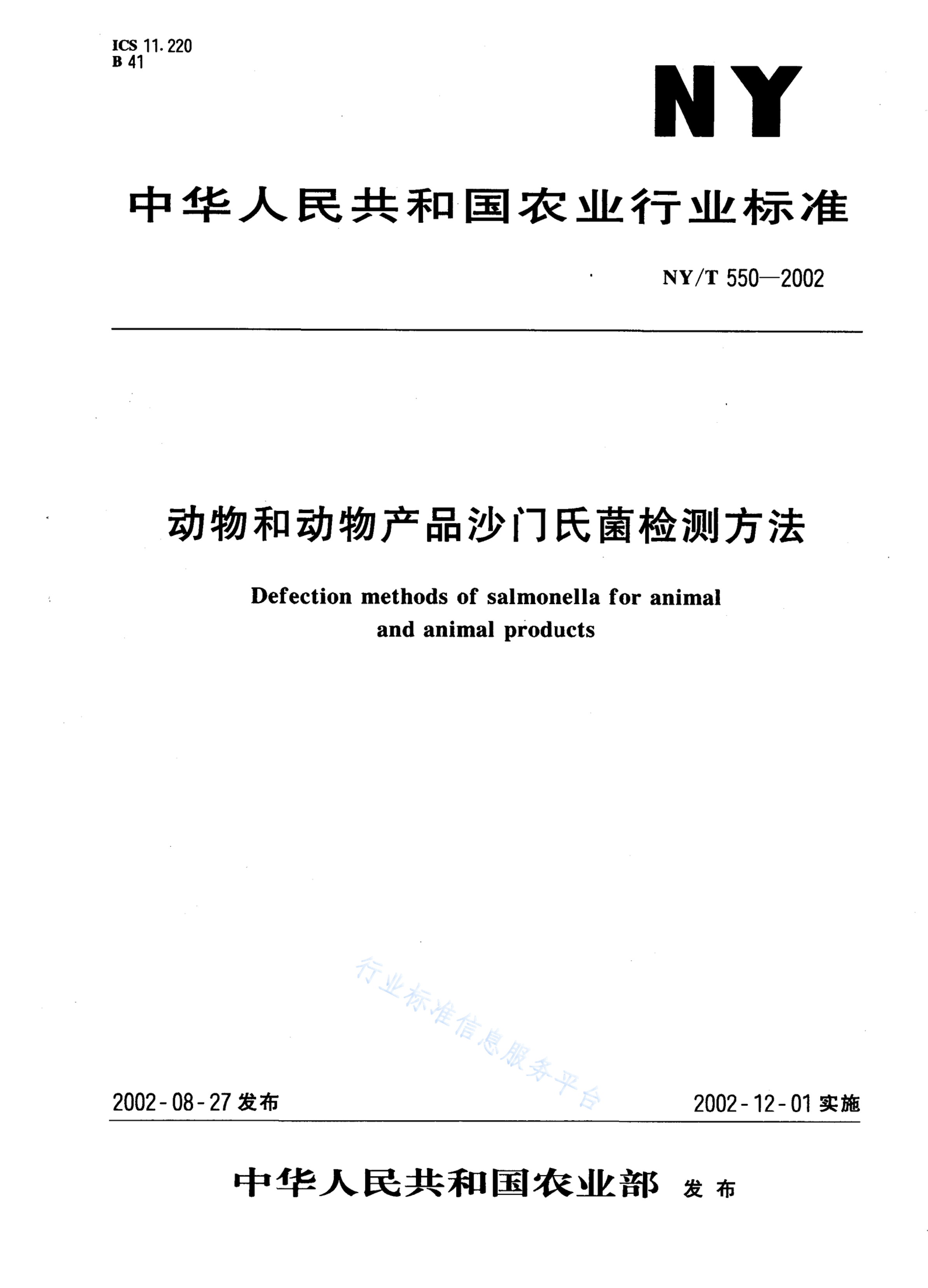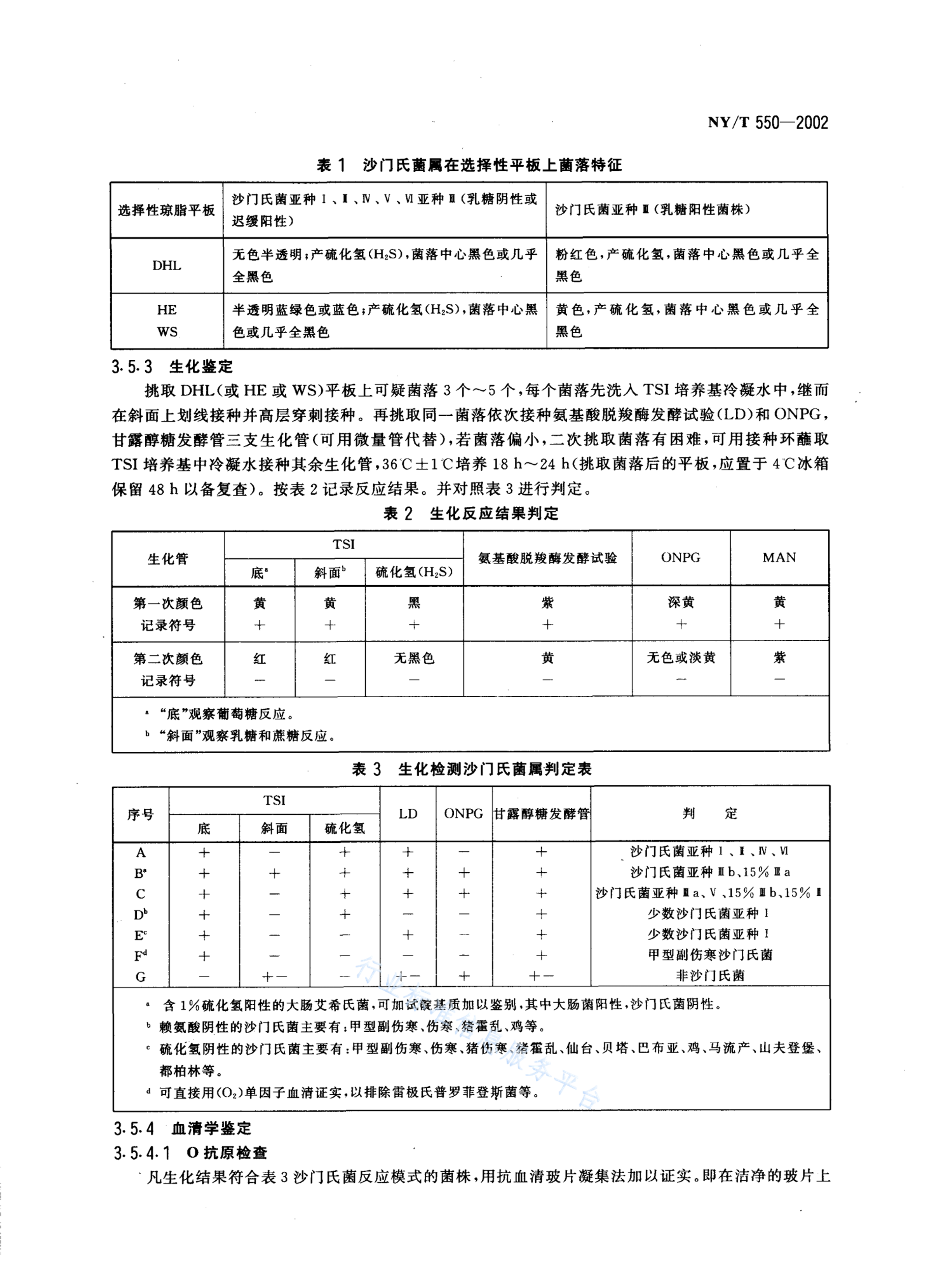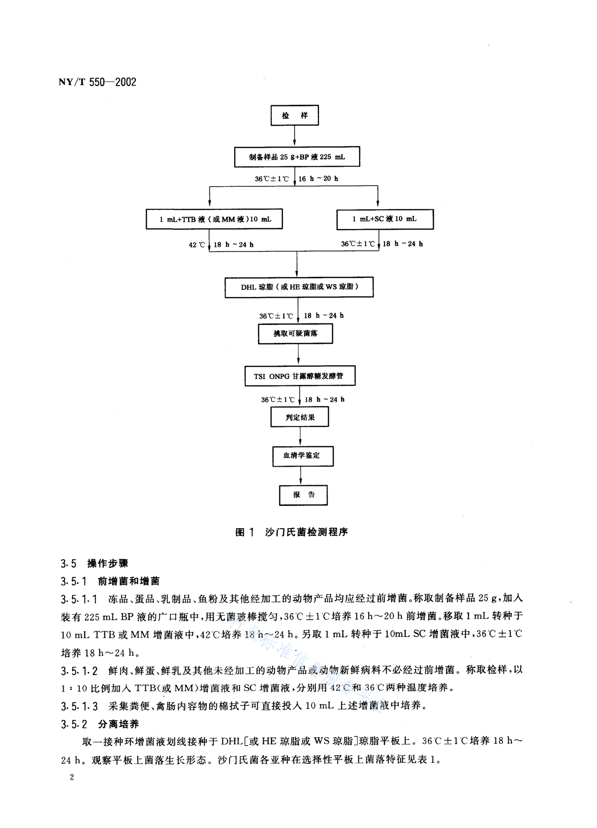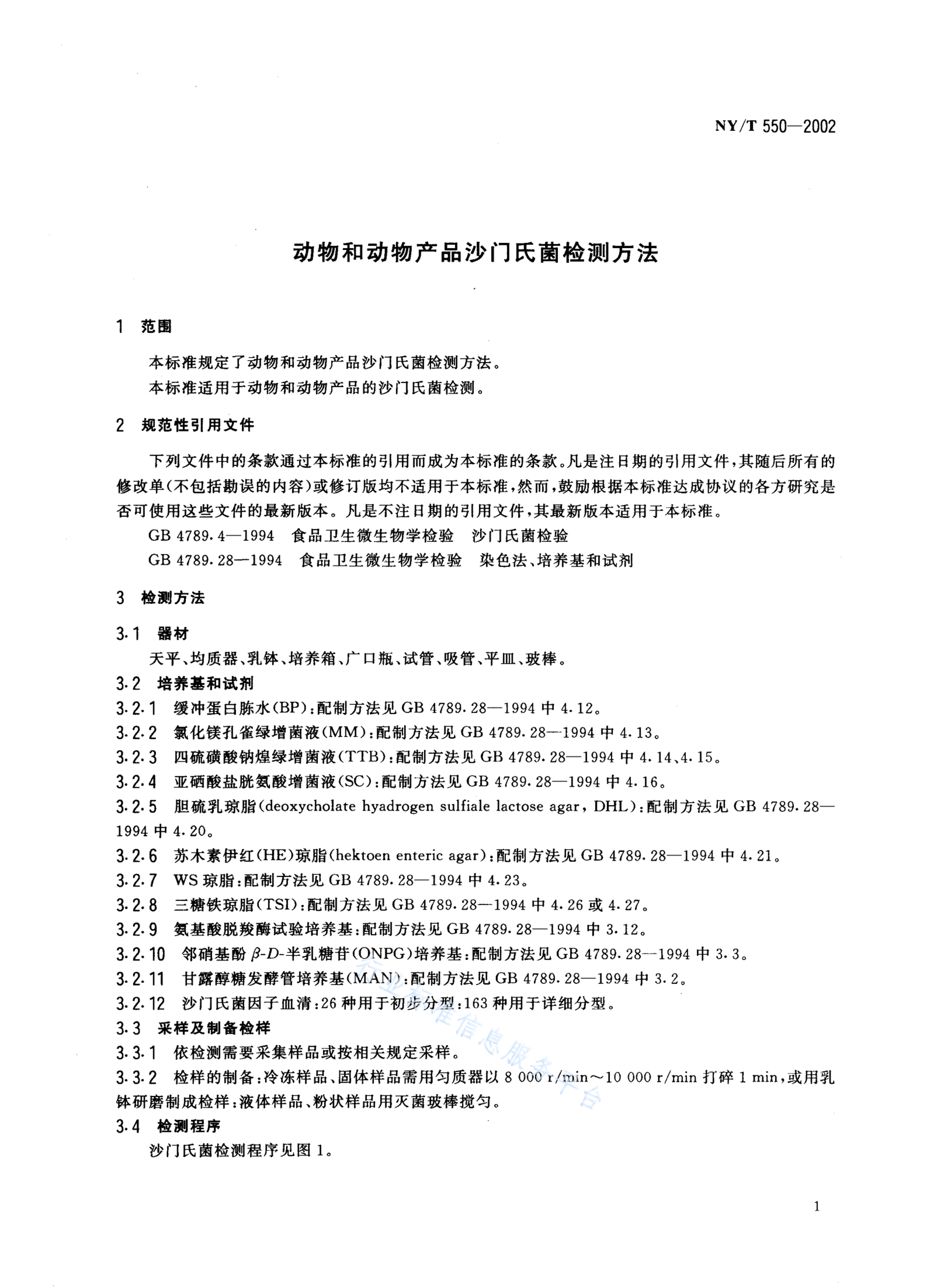 NY/T 550-2002 动物和动物产品沙门氏菌检测方法