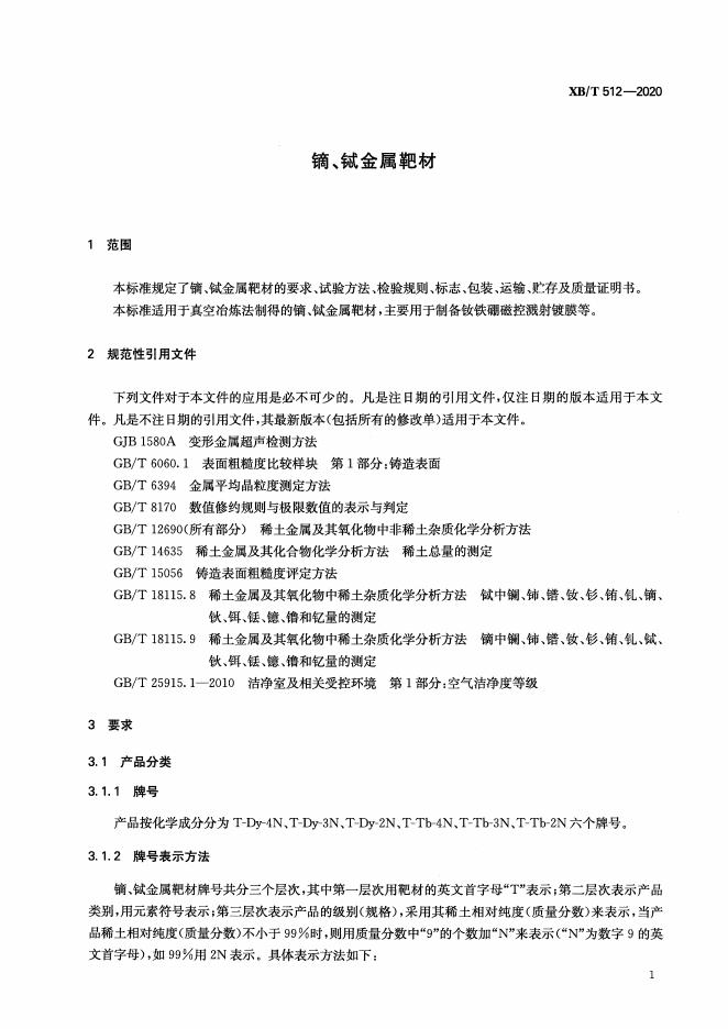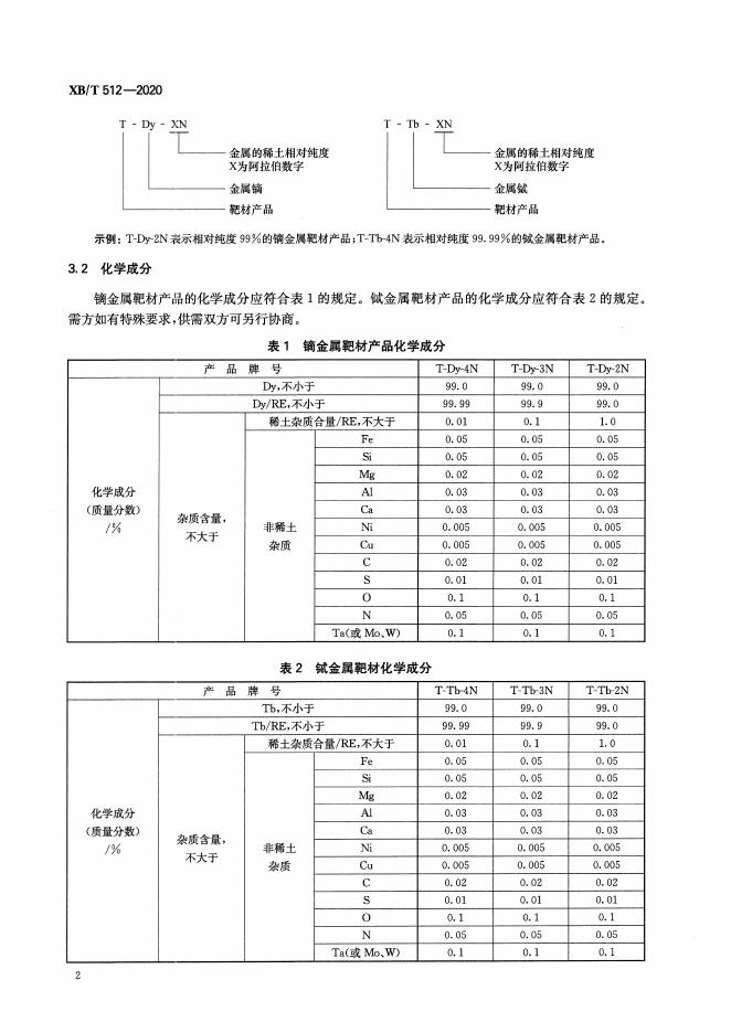 XB/T 512-2020 镝、铽金属靶材