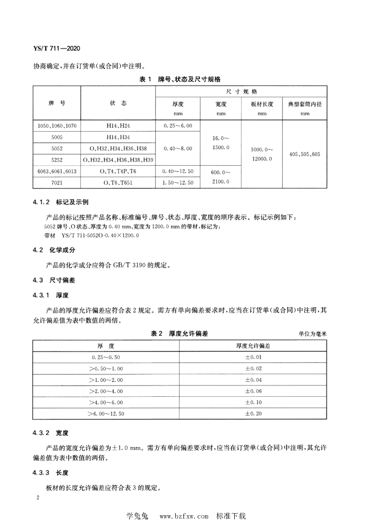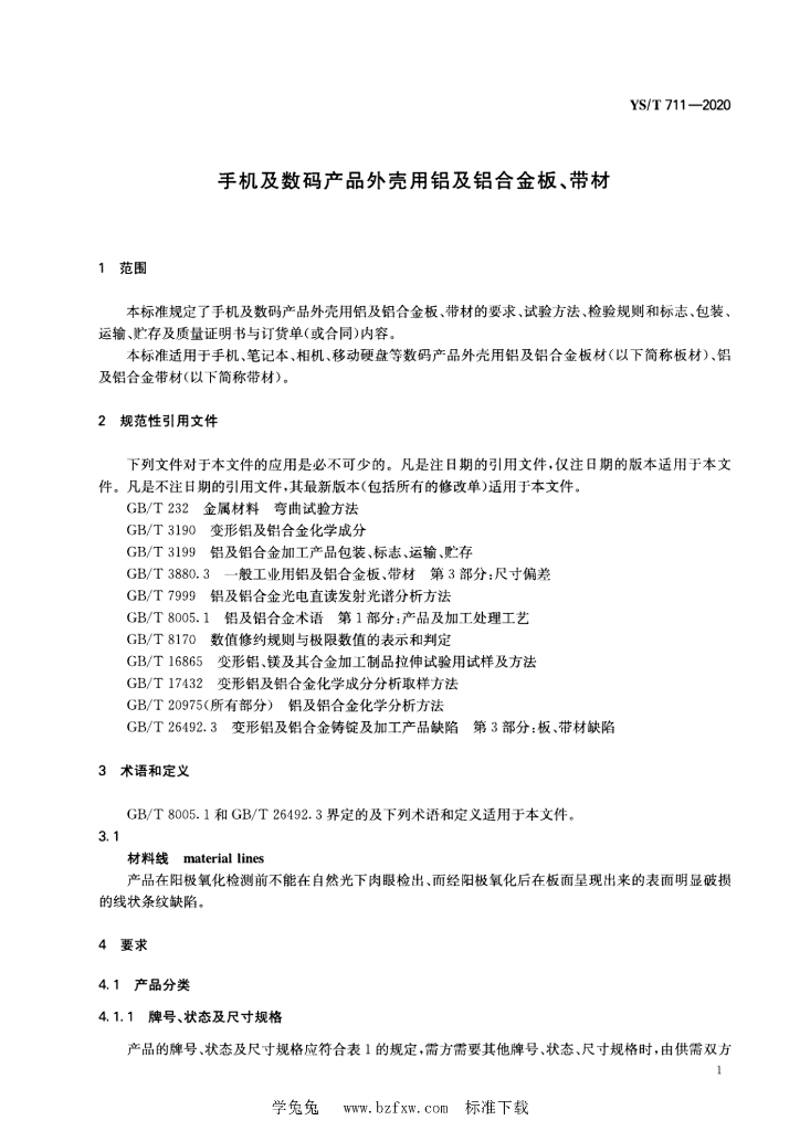 YS/T 711-2020 手机及数码产品外壳用铝及铝合金板、带材