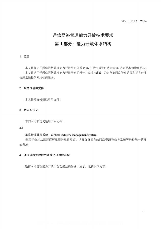 YD/T 6182.1-2024 通信网络管理能力开放技术要求 第1部分:能力开放体系结构