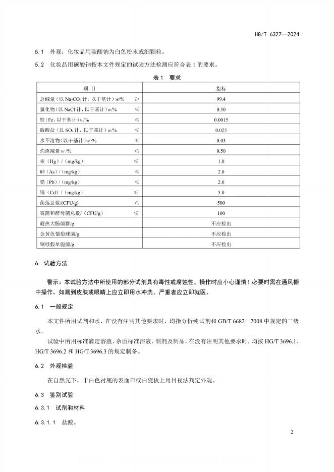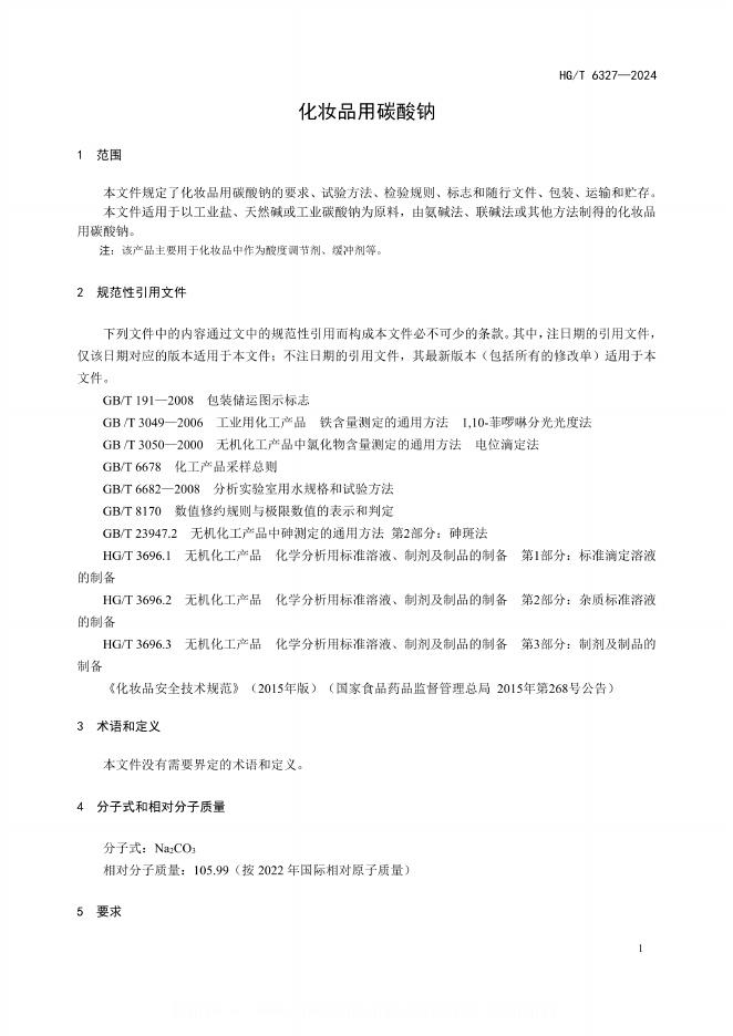 HG/T 6327-2024 化妆品用碳酸钠