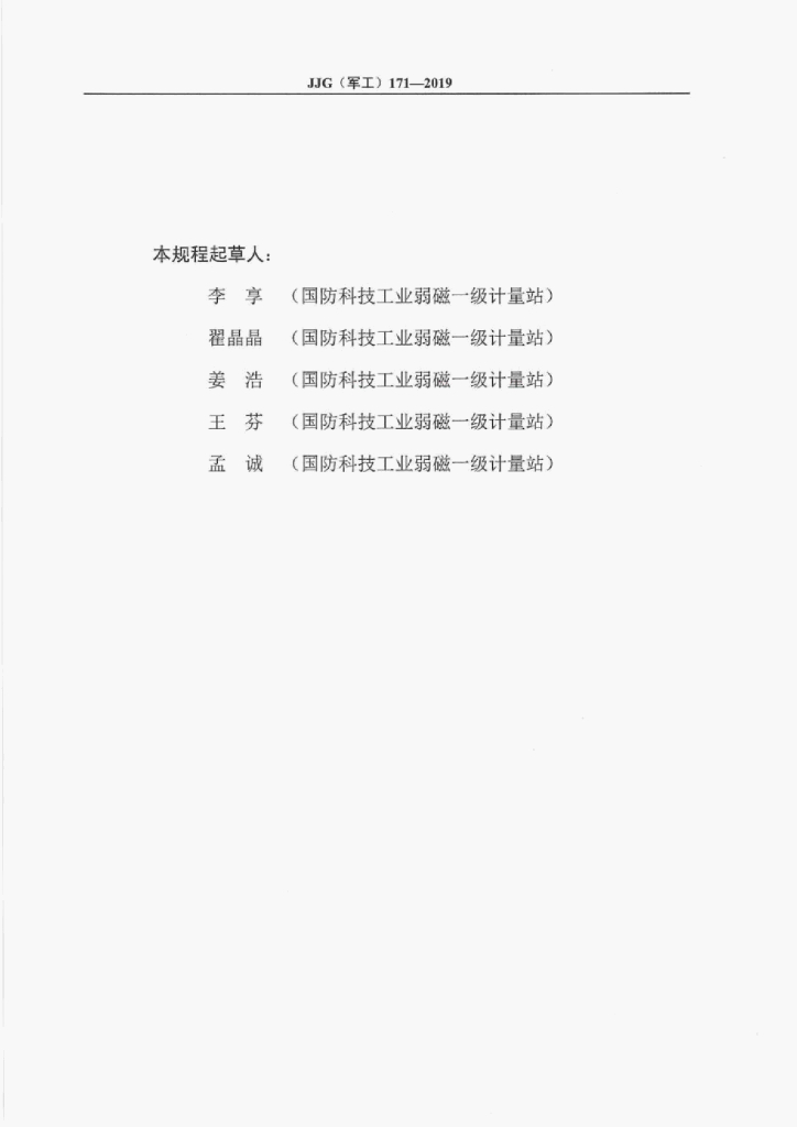 JJG(军工)171-2019 梯度磁强计检定规程