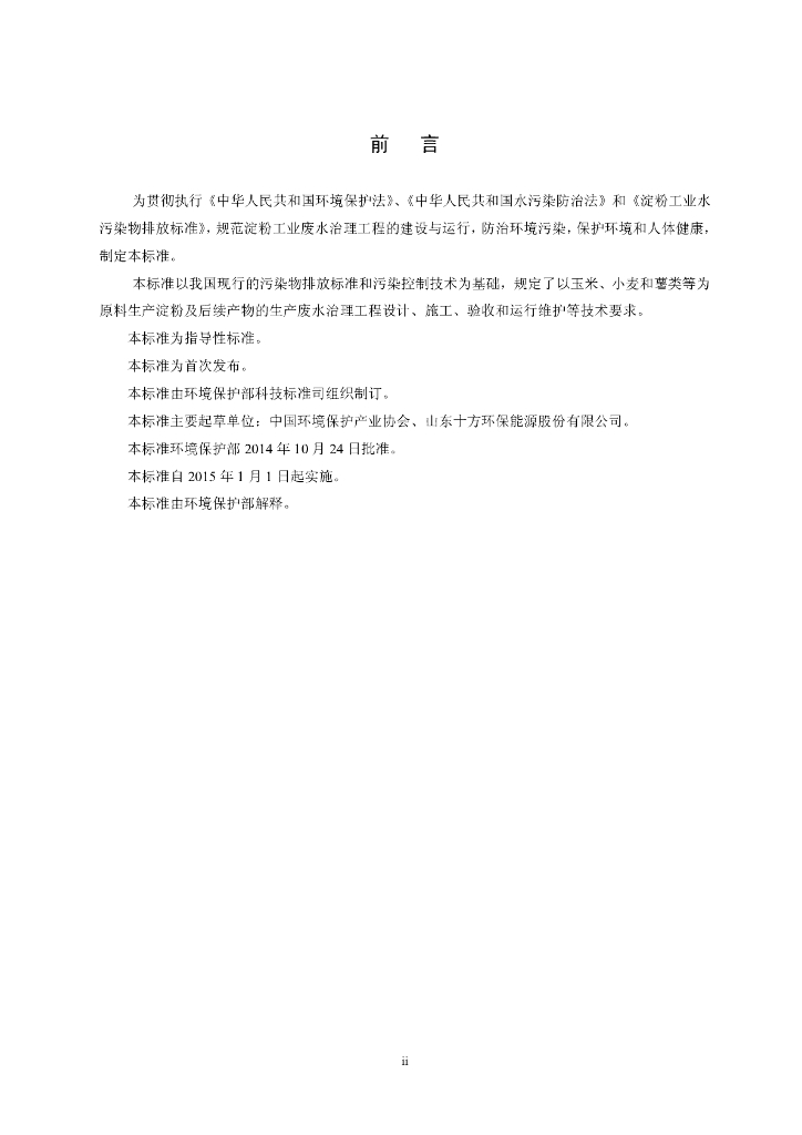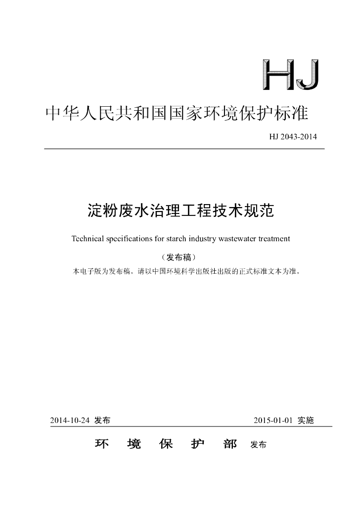 HJ 2043-2014 淀粉废水治理工程技术规范