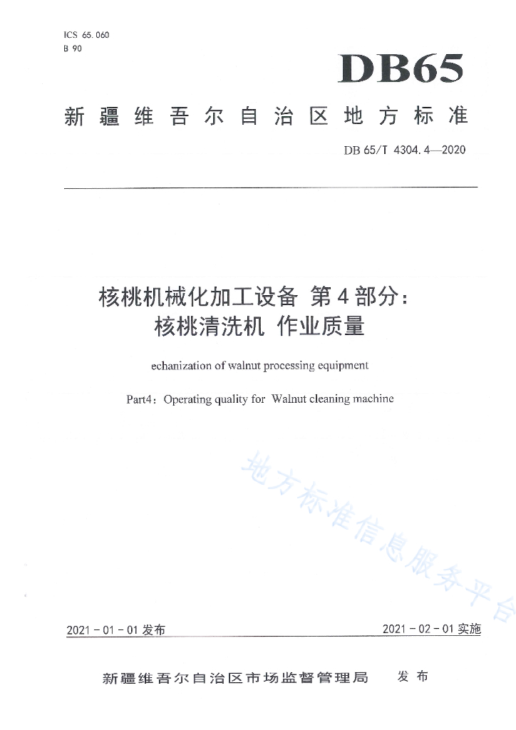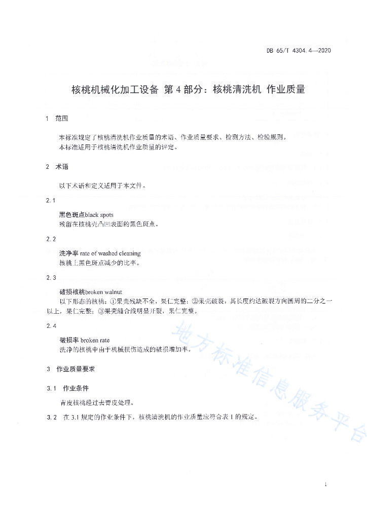 DB65/T 4304.4-2020 核桃机械化加工设备 第4部分:核桃清洗机 作业质量