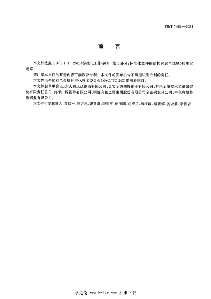 山东天和压延铜箔有限公司、灵宝金源朝辉铜业有限公司、有色金属技术经济研究院有限责任公司、菏泽广源铜带有限公司、铜陵有色金属集团股份有限公司金威铜业分公司、中色奥博特铜铝业有限公司