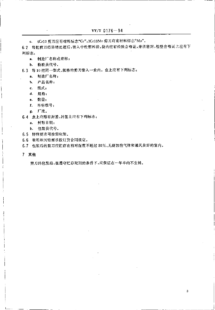 YY/T 0176-1994 医用剪通用技术条件