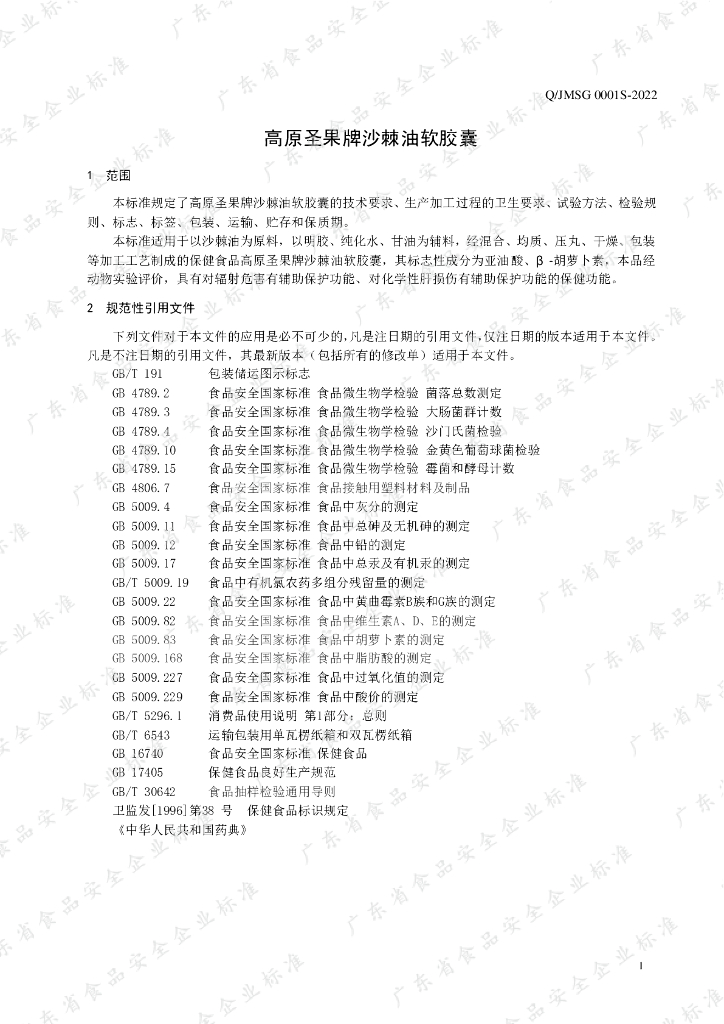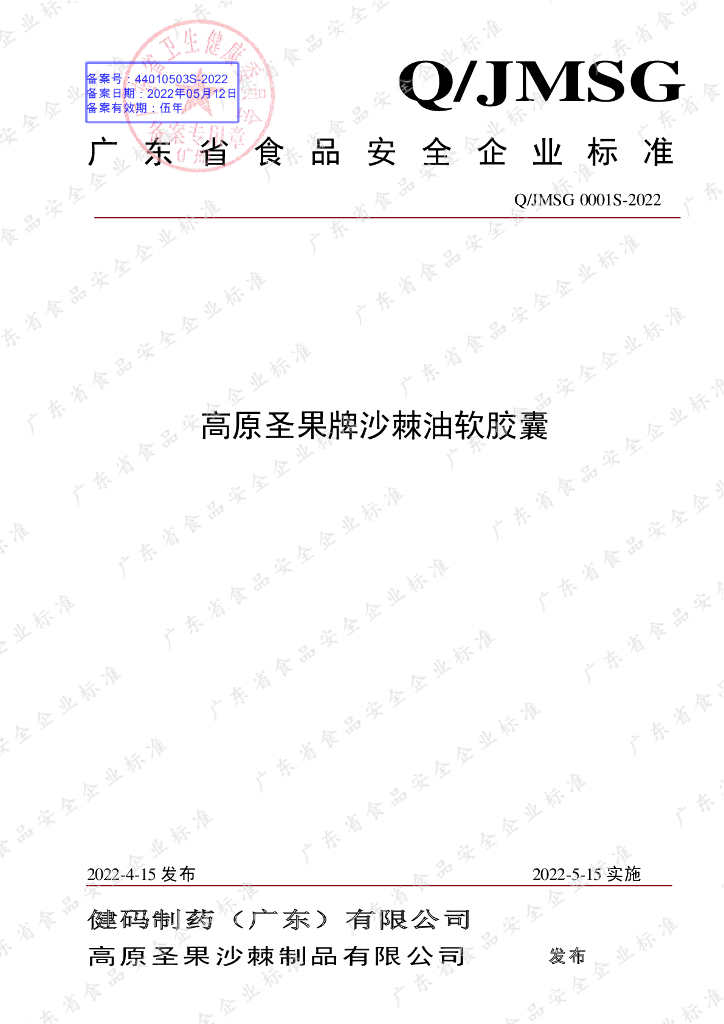 Q/JMSG 0001S-2022 高原圣果牌沙棘油软胶囊