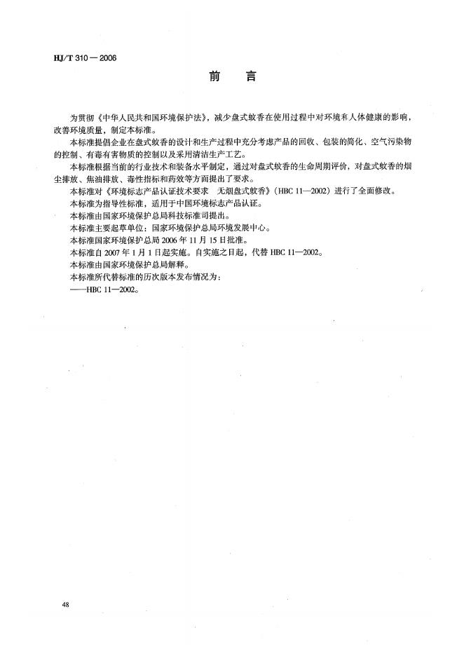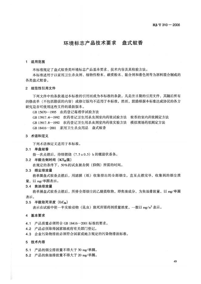 HJ/T 310-2006 环境标志产品技术要求 盘式蚊香