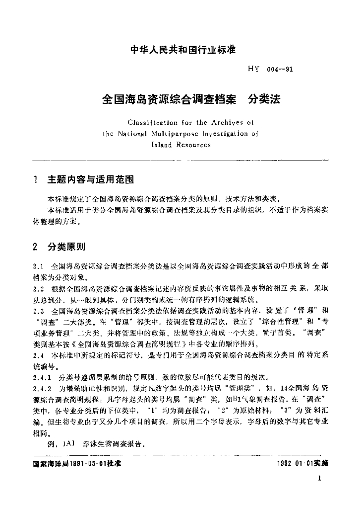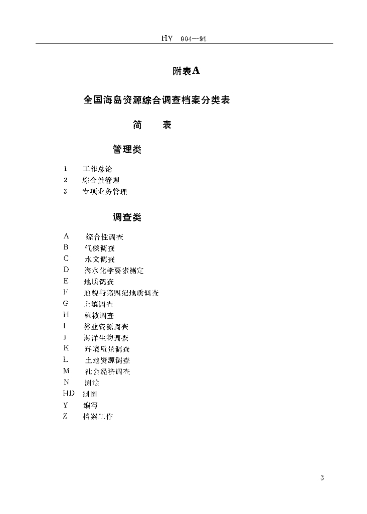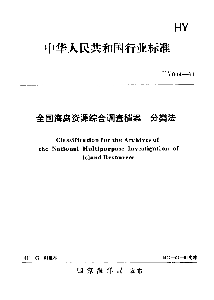 HY 004-1991 全国海岛资源综合调查档案 分类法