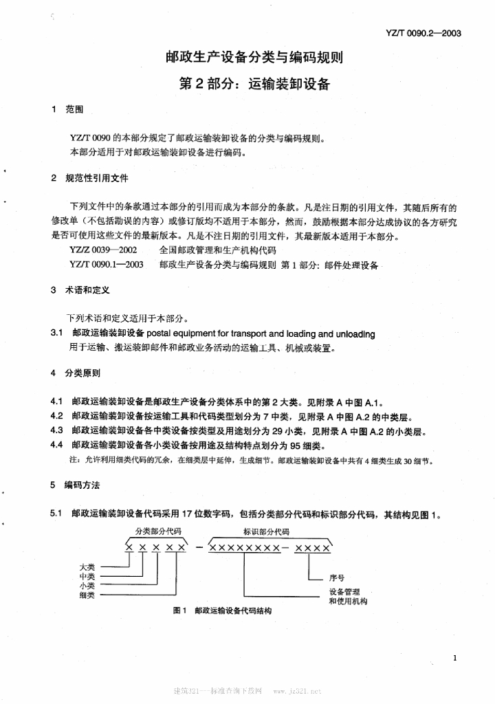 YZ/T 0090.2-2003 邮政生产设备分类与编码规则 第2部分:运输装卸设备