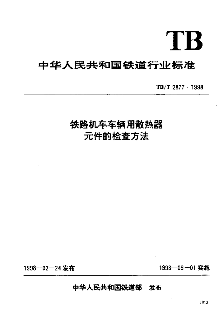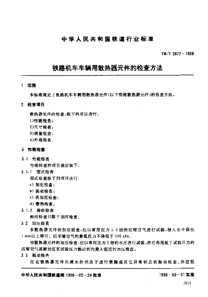 TB/T 2877-1998 铁路机车车辆用散热器元件的检查方法