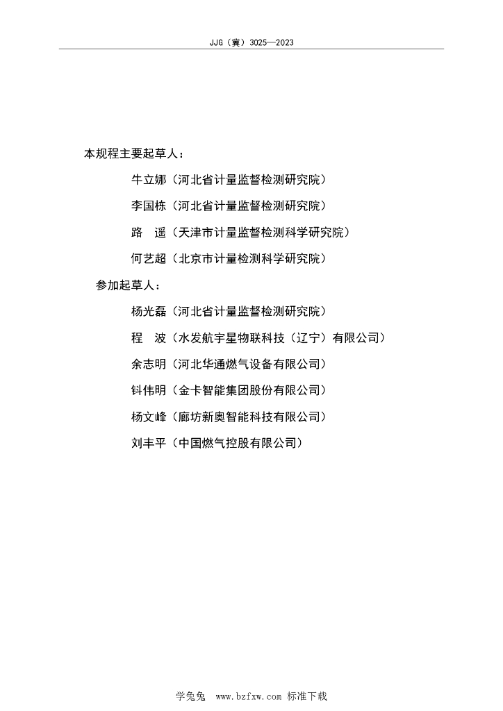 牛立娜(河北省计量监督检测研究院)、李国栋(河北省计量监督检测研究院)、路遥(天津市计量监督检测科学研究院)、何艺超(北京市计量检测科学研究院)、杨光磊(河北省计量监督检测研究院)、程波(水发航宇星物联科技(辽宁)有限公司)、余志明(河北华通燃气设备有限公司)、钭伟明(金卡智能集团股份有限公司)、杨文峰(廊坊新奥智能科技有限公司)、刘丰平(中国燃气控股有限公司)