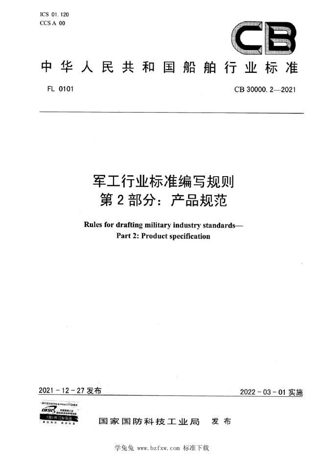 CB 30000.2-2021 军工行业标准编写规则 第2部分:产品规范