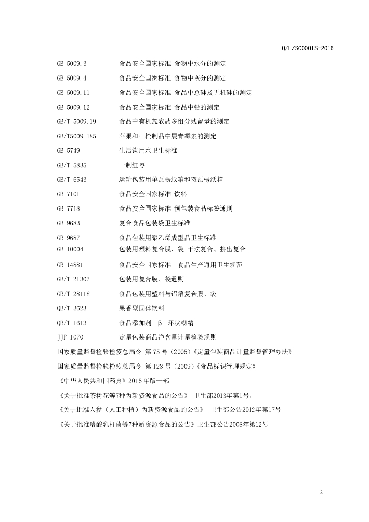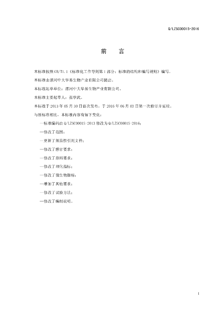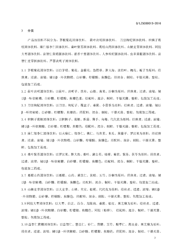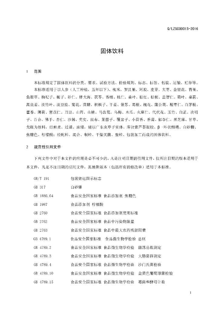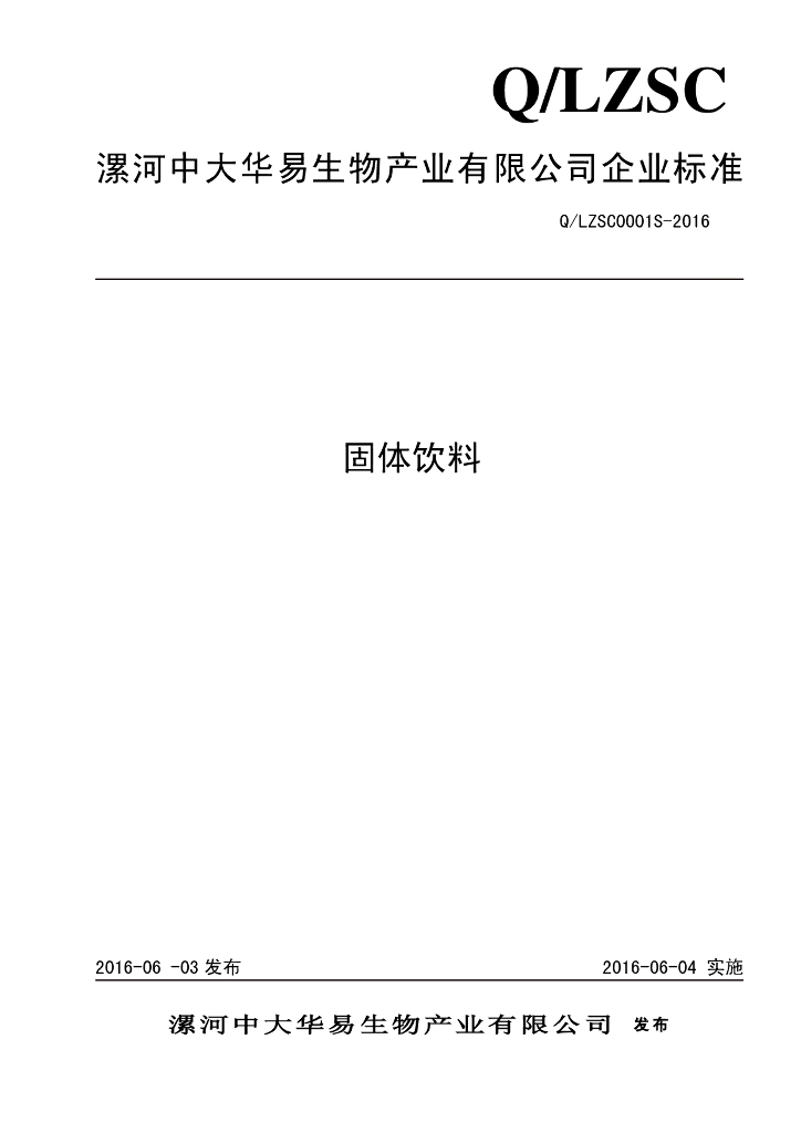 Q/LZSC 0001S-2016 漯河中大华易生物产业有限公司 固体饮料