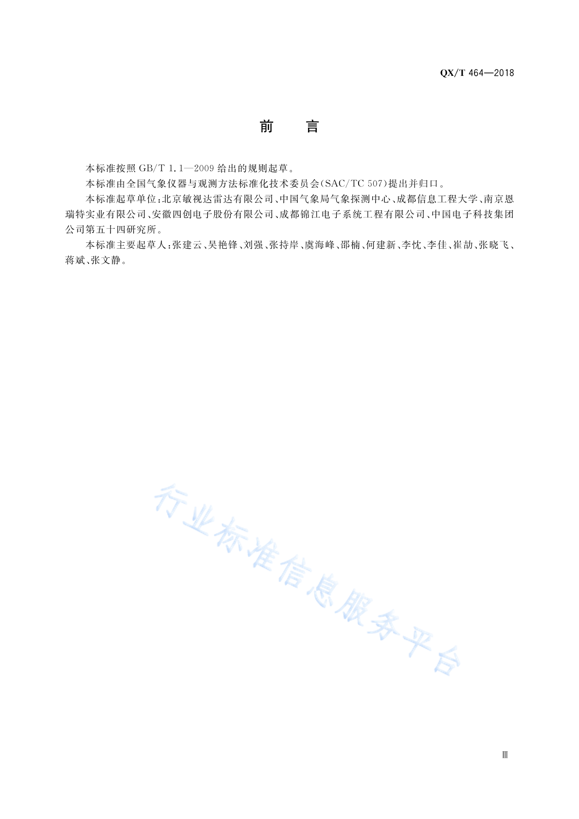 北京敏视达雷达有限公司、中国气象局气象探测中心、成都信息工程大学、南京恩瑞特实业有限公司、安徽四创电子股份有限公司、成都锦江电子系统工程有限公司、中国电子科技集团公司第五十四研究所