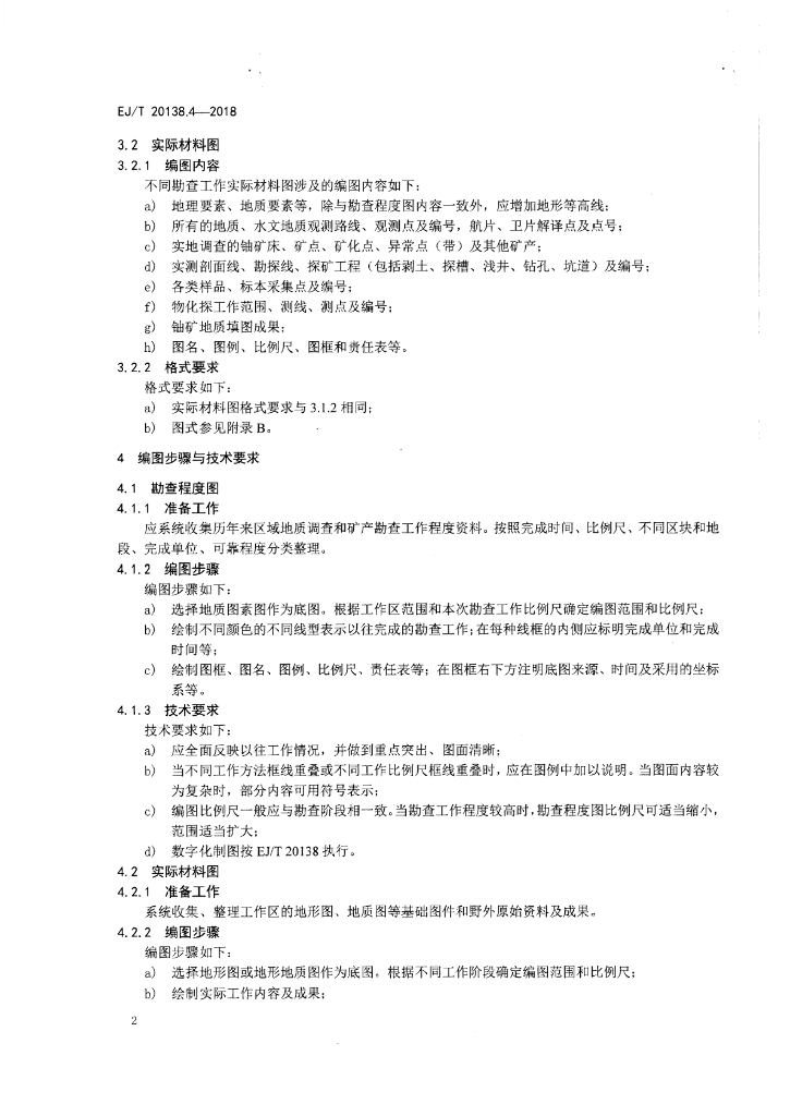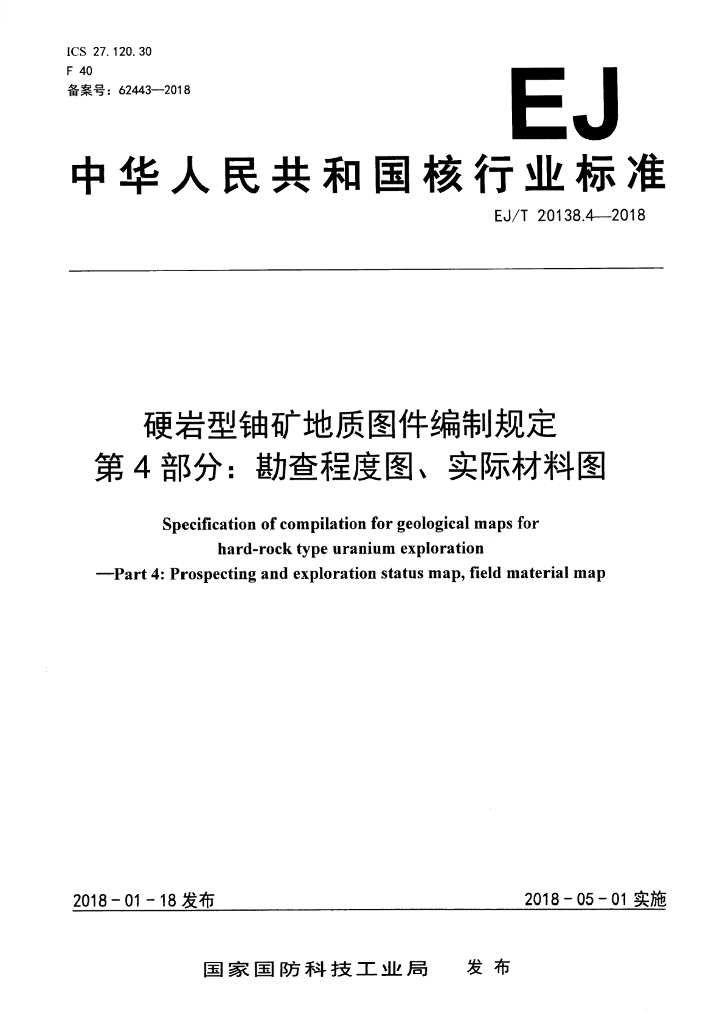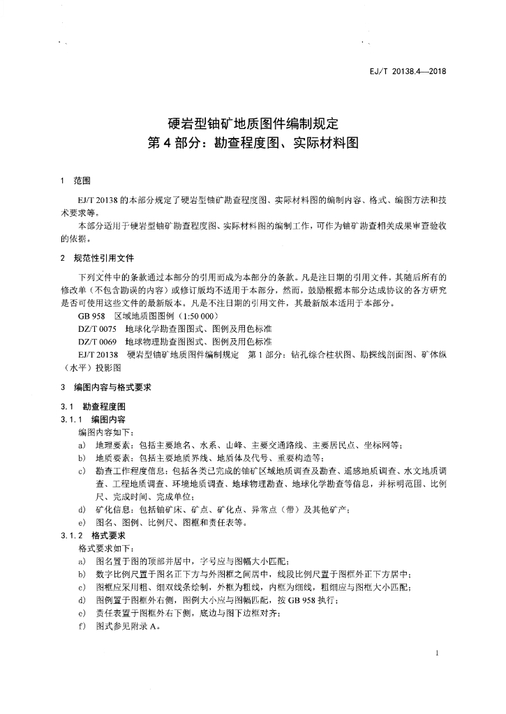 EJ/T 20138.4-2018 硬岩型铀矿地质图件编制规定 第4部分:勘查程度图、实际材料图