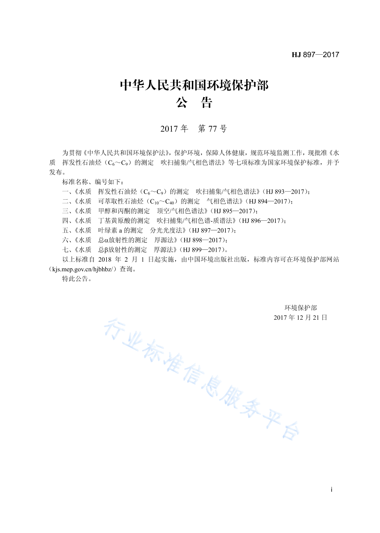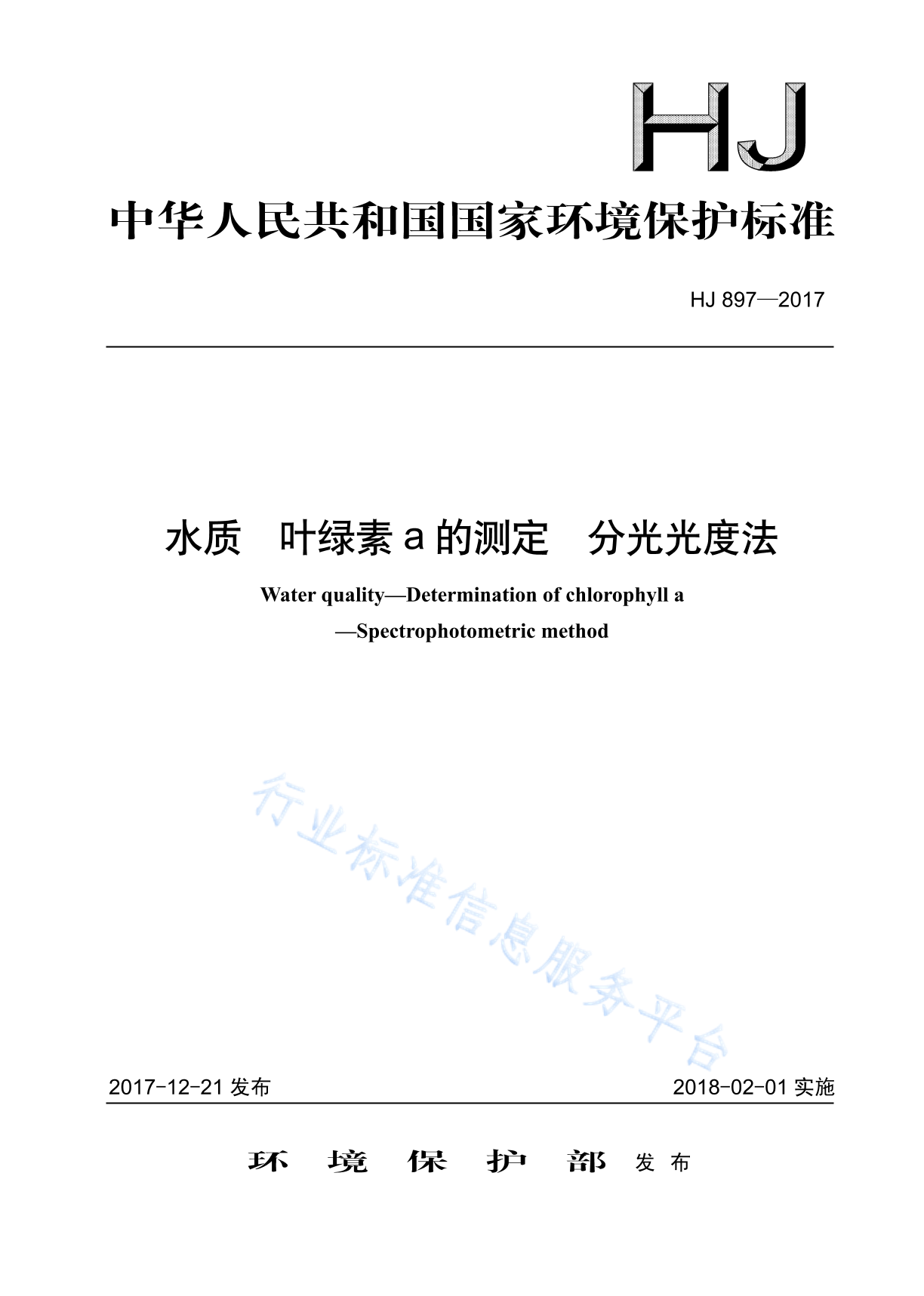 HJ 897-2017 水质 叶绿素a的测定 分光光度法