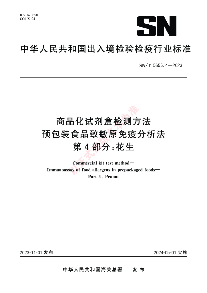 SN/T 5655.4-2023 商品化试剂盒检测方法 预包装食品致敏原免疫分析法 第4部分:花生