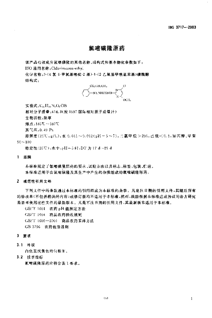 HG 3717-2003 氯嘧磺隆原药