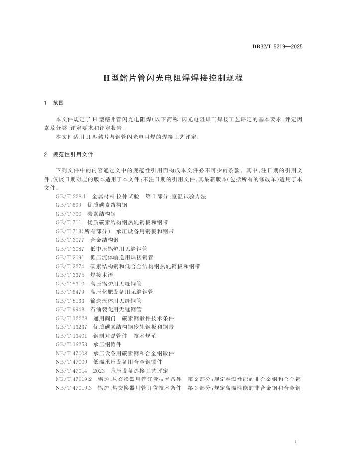 DB32/T 5219-2025 H型鳍片管闪光电阻焊焊接控制规程