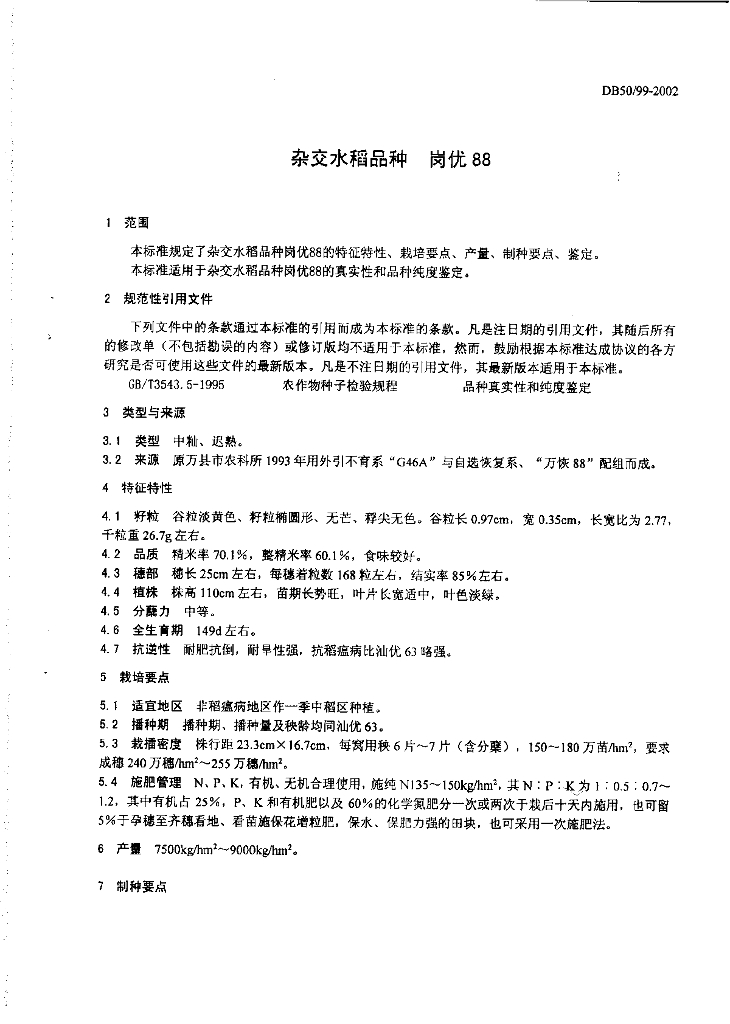 DB50/ 99-2002 杂交水稻品种 岗优88