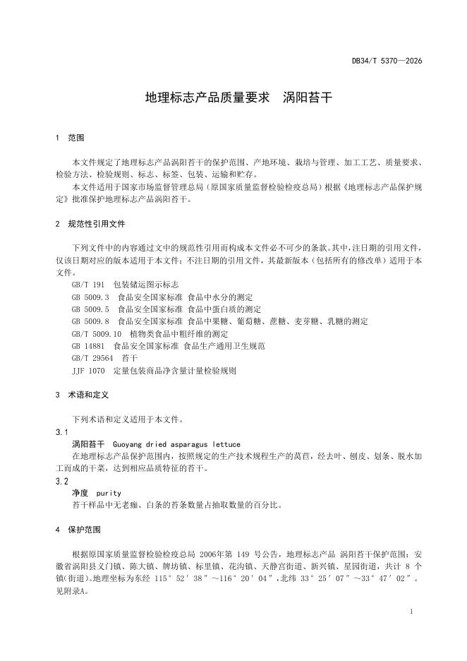 DB34/T 5370-2026 地理标志产品质量要求 涡阳苔干