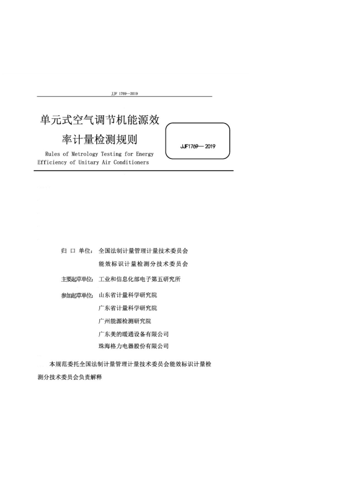 工业和信息化部电子第五研究所、山东省计量科学研究院、广东省计量科学研究院、广州能源检测研究院、广东美的暖通设备有限公司、珠海格力电器股份有限公司