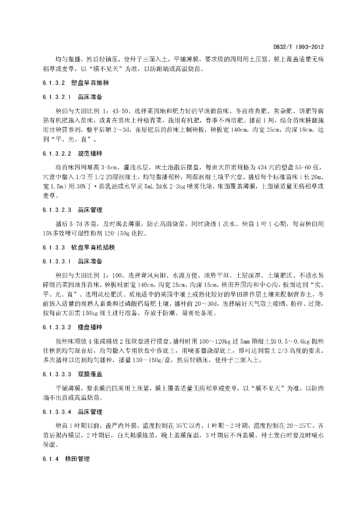 DB32/T 1993-2012 淮稻9号生产技术规程