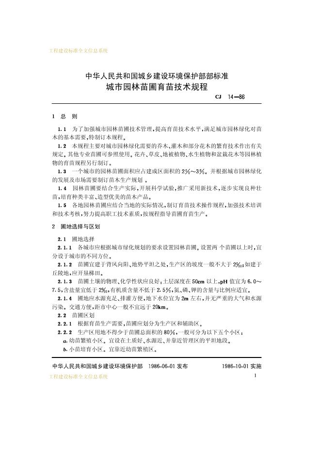 CJ 14-1986 城市园林苗圃育苗技术规程