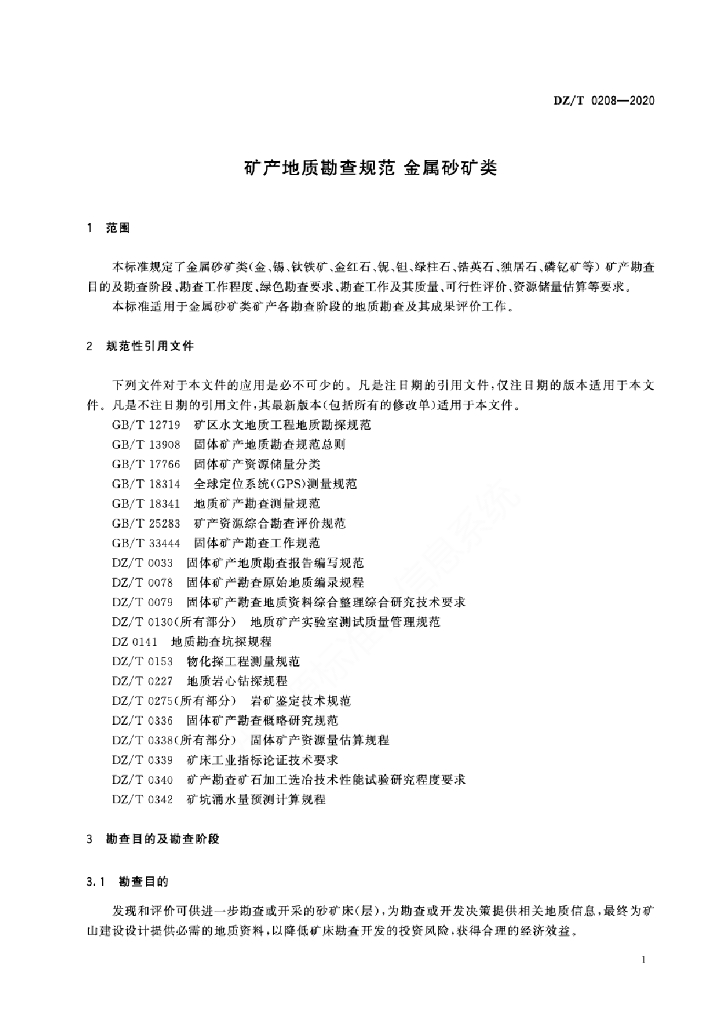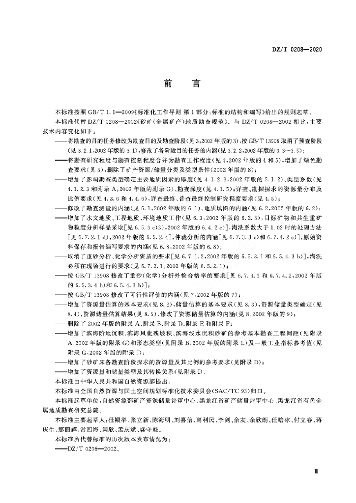 DZ/T 0208-2020 矿产地质勘查规范 金属砂矿类