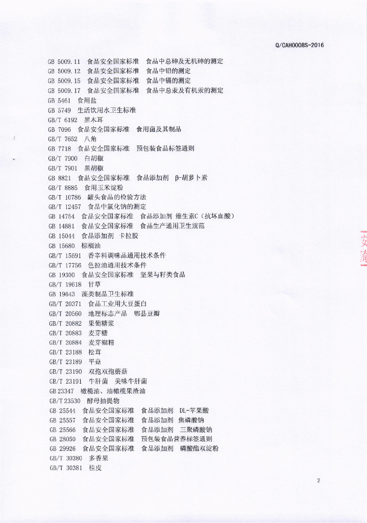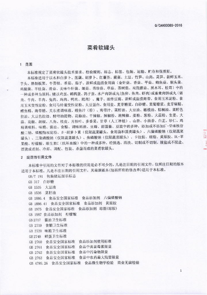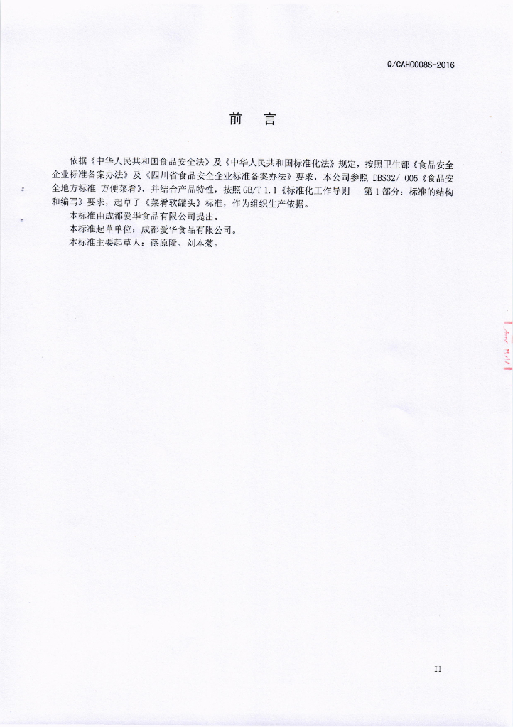Q/CAH 0008S-2016 成都爱华食品有限公司 菜肴软罐头
