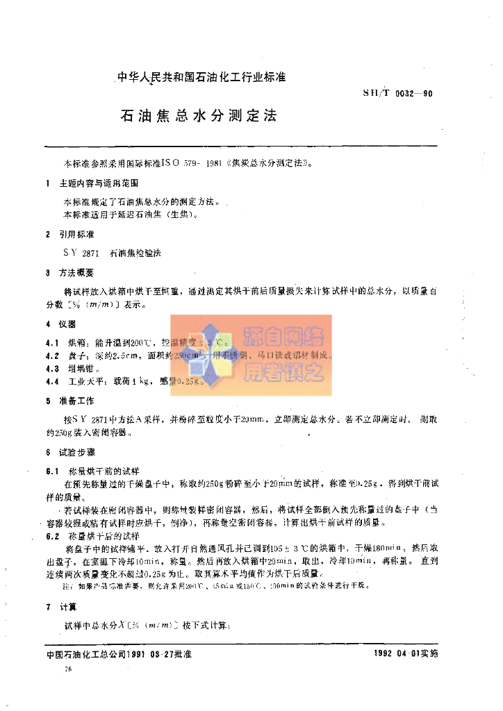 SH/T 0032-1990 石油焦总水分测定法